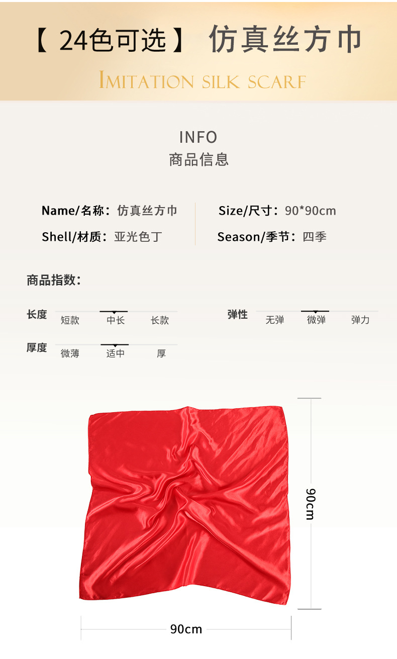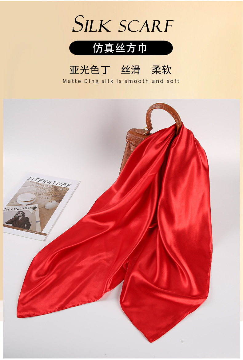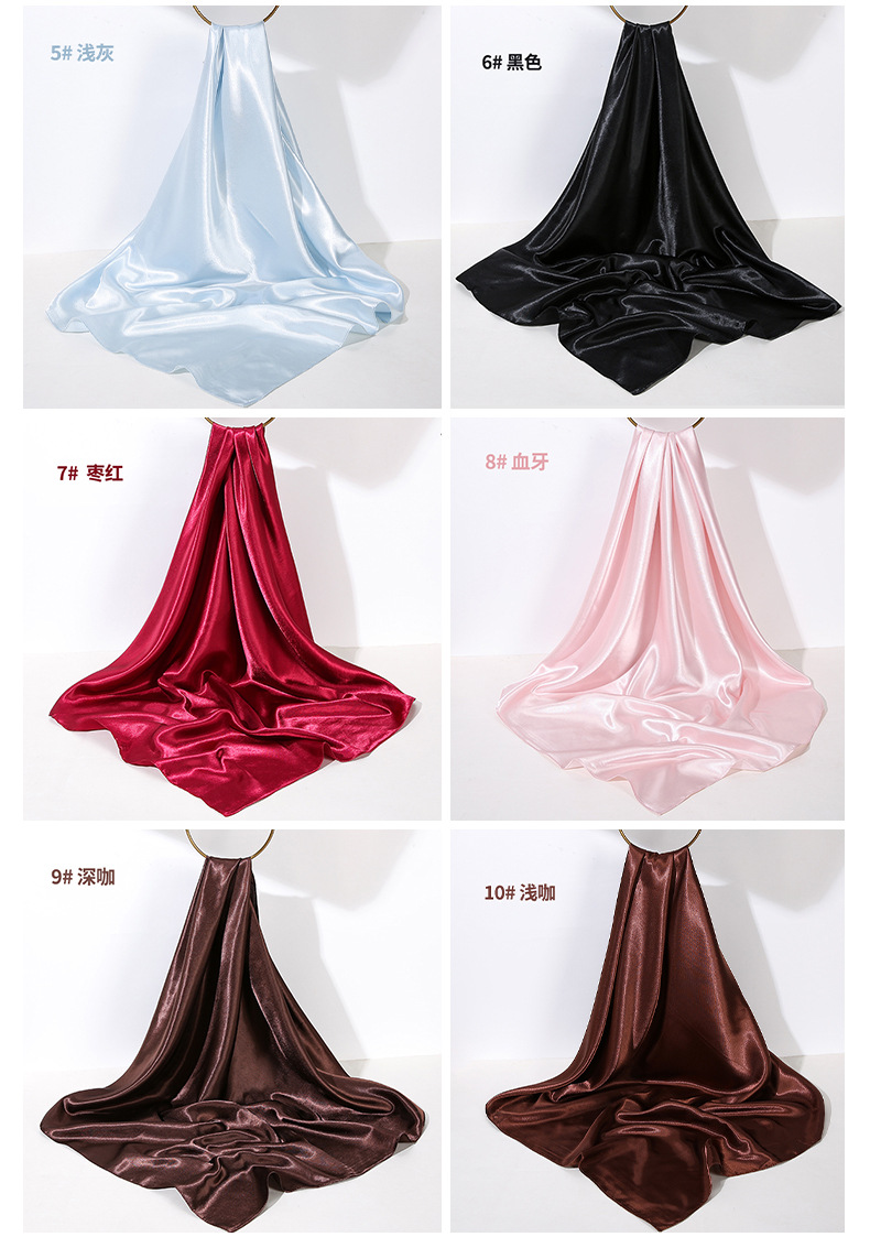 90cm 솔리드 컬러 실크 스카프 단색 대형 사각형 스카프 모조 실크 차양 밝은 새틴 새틴 스퀘어 스카프 목도리 재고 있음
