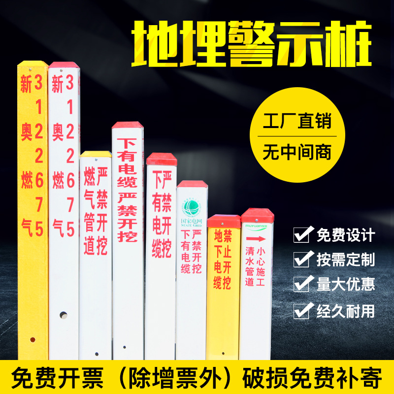 지하 마커 말뚝, PVC 아래에 전력 케이블, 가스, 급수, 석유 파이프라인이 있음, 지하 유리섬유 경고 표지판스토어 가기