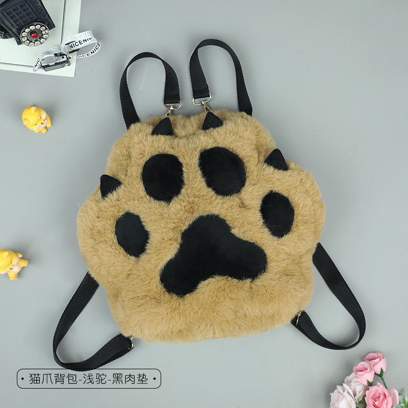 • 고양이 발 배낭-가벼운 카멜-검은 고기 패드