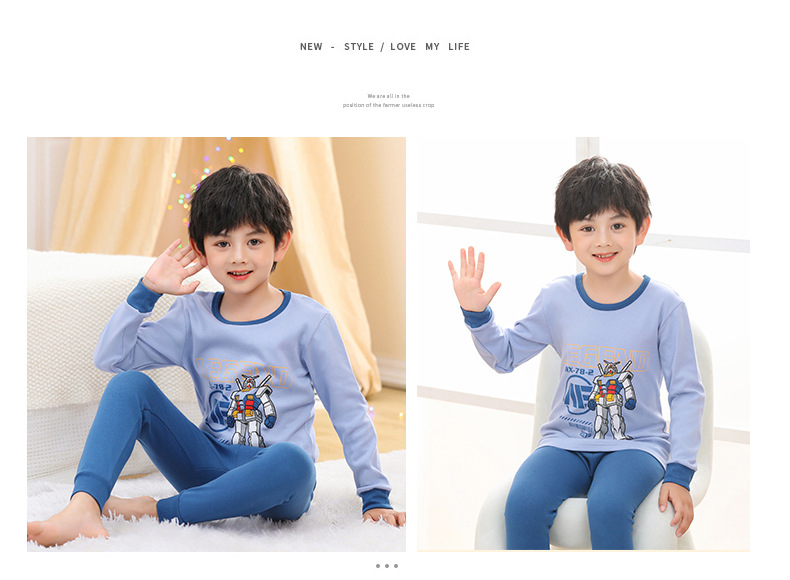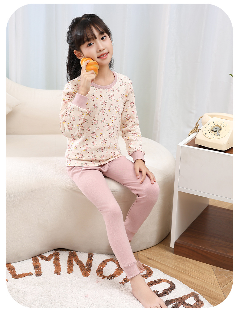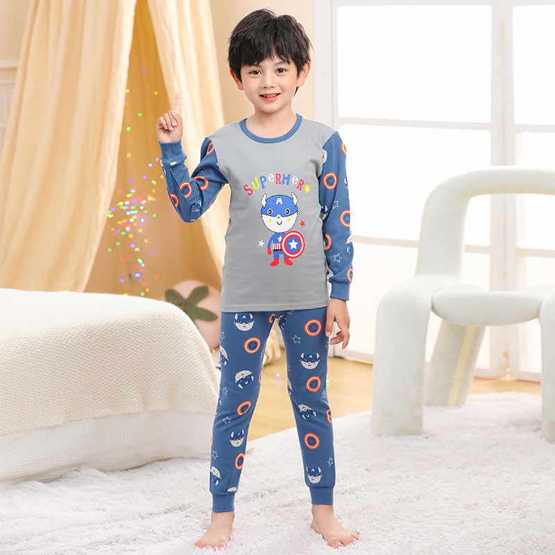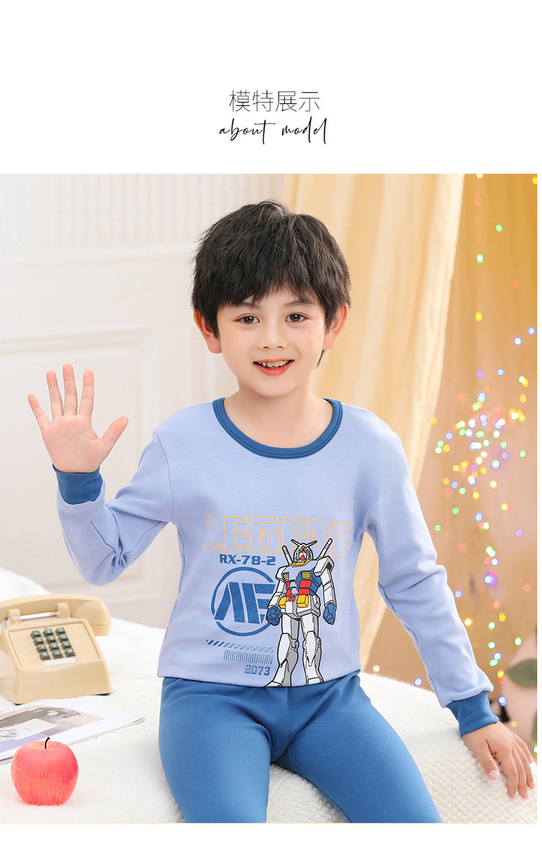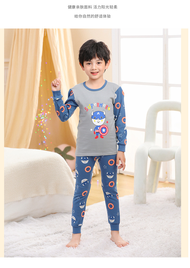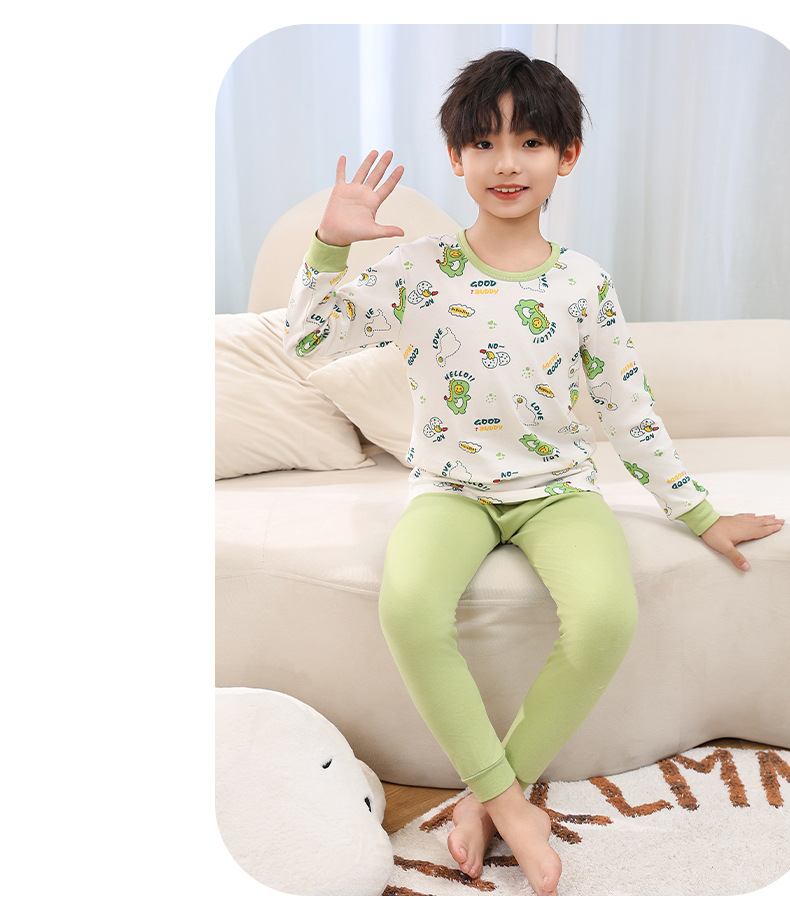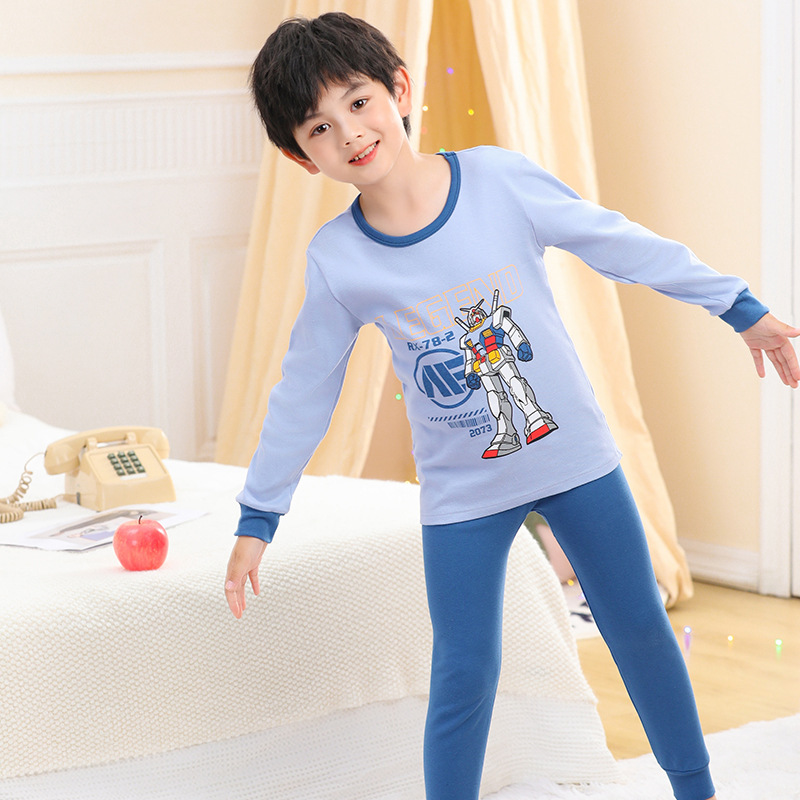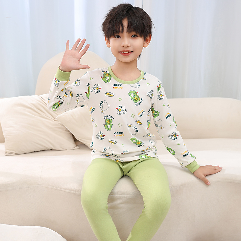 소년 가을 옷과 바지 어린이 속옷 세트 여아 순면 봄과 가을 면 중간과 큰 어린이 여아 잠옷 면 스웨터