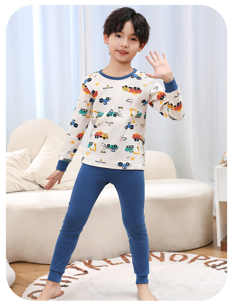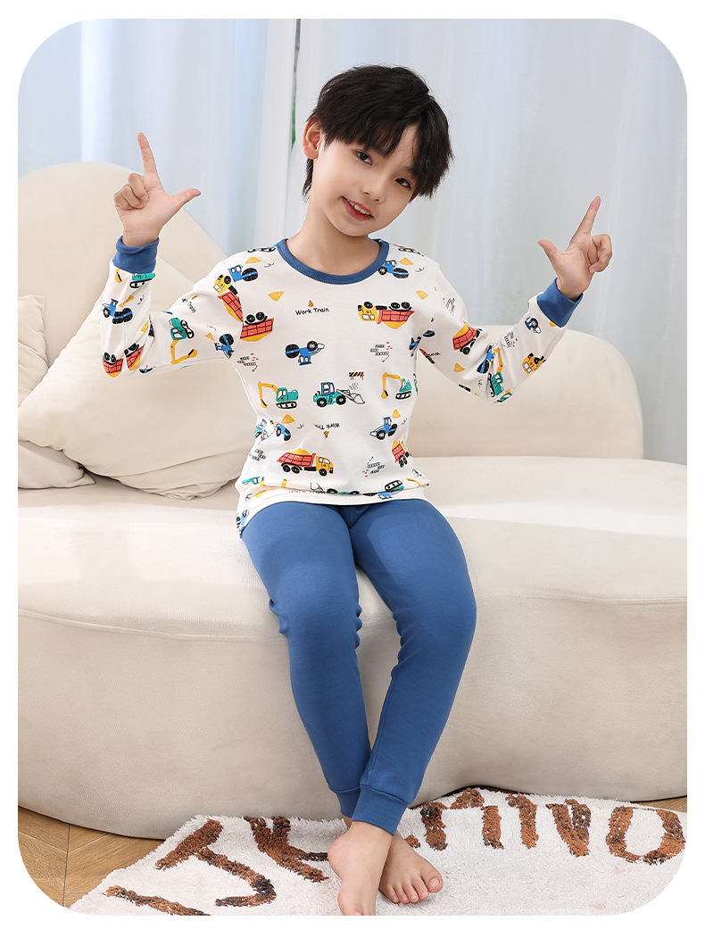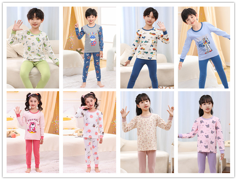 소년 가을 옷과 바지 어린이 속옷 세트 여아 순면 봄과 가을 면 중간과 큰 어린이 여아 잠옷 면 스웨터스토어 가기