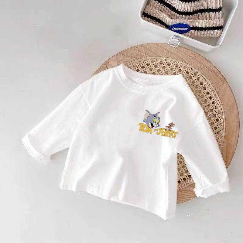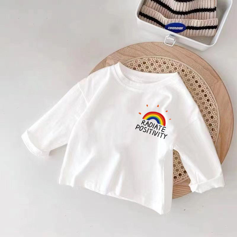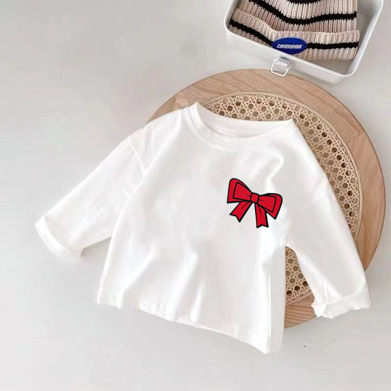 100 순면 어린이 긴 소매 베이스 셔츠 봄과 가을 인쇄 스타일리스트 캐주얼 티셔츠 소년기 아기의 최고 유행