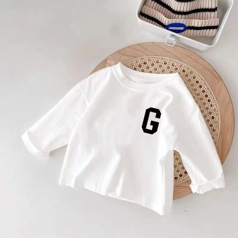 100 순면 어린이 긴 소매 베이스 셔츠 봄과 가을 인쇄 스타일리스트 캐주얼 티셔츠 소년기 아기의 최고 유행스토어 가기