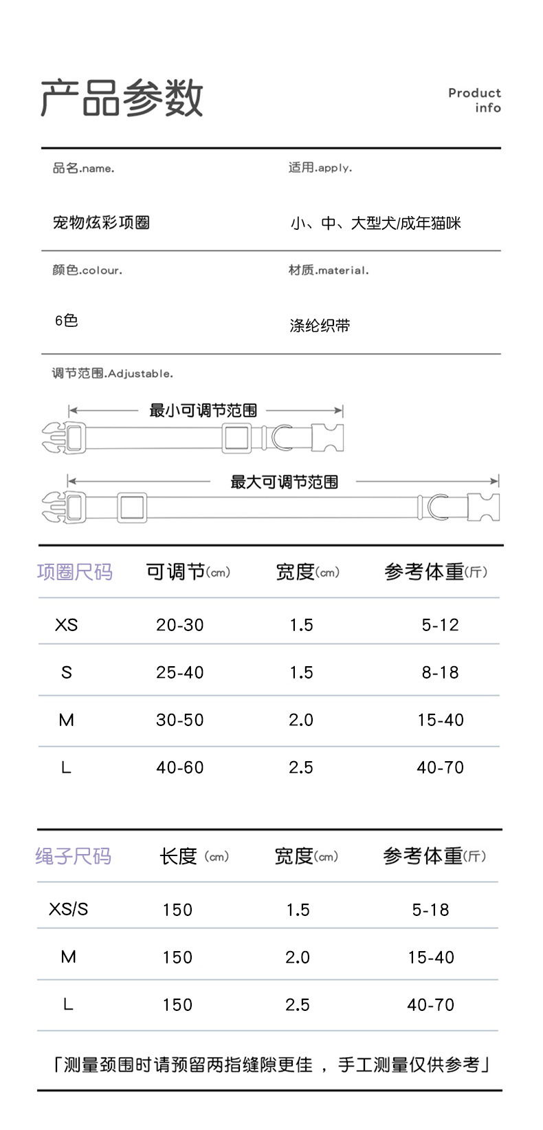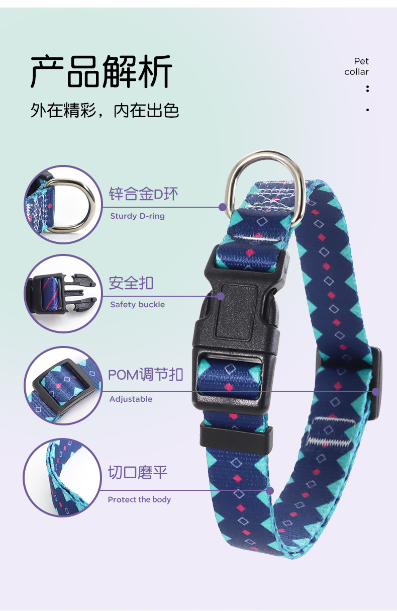 개 목걸이 애완 동물 목걸이 나일론 색상 조정 가능한 고양이 고리 견인 대형, 중형 및 소형 개