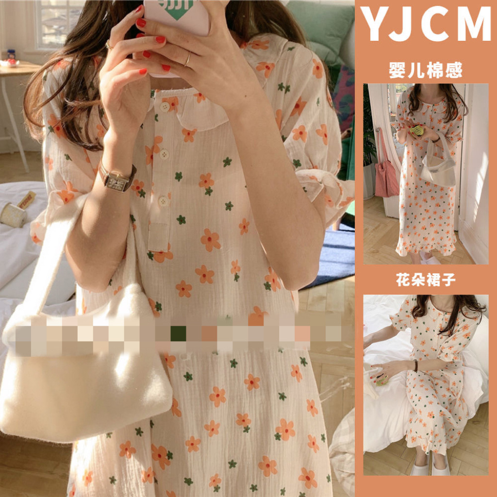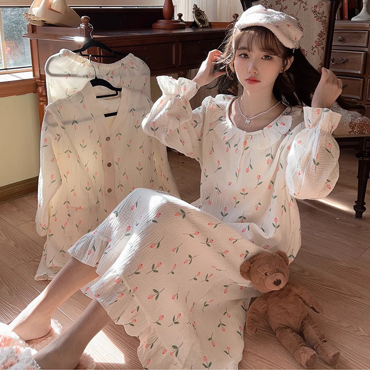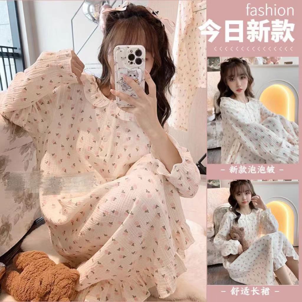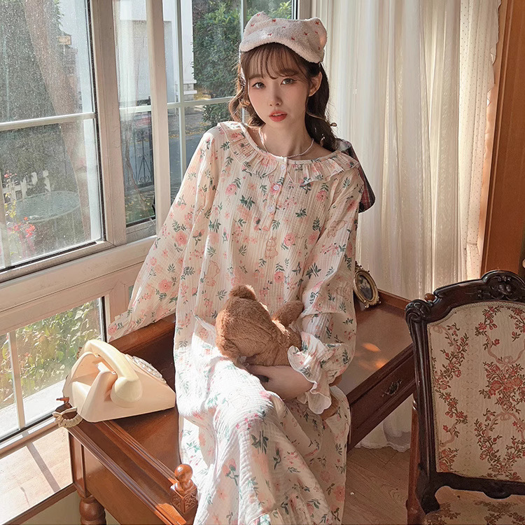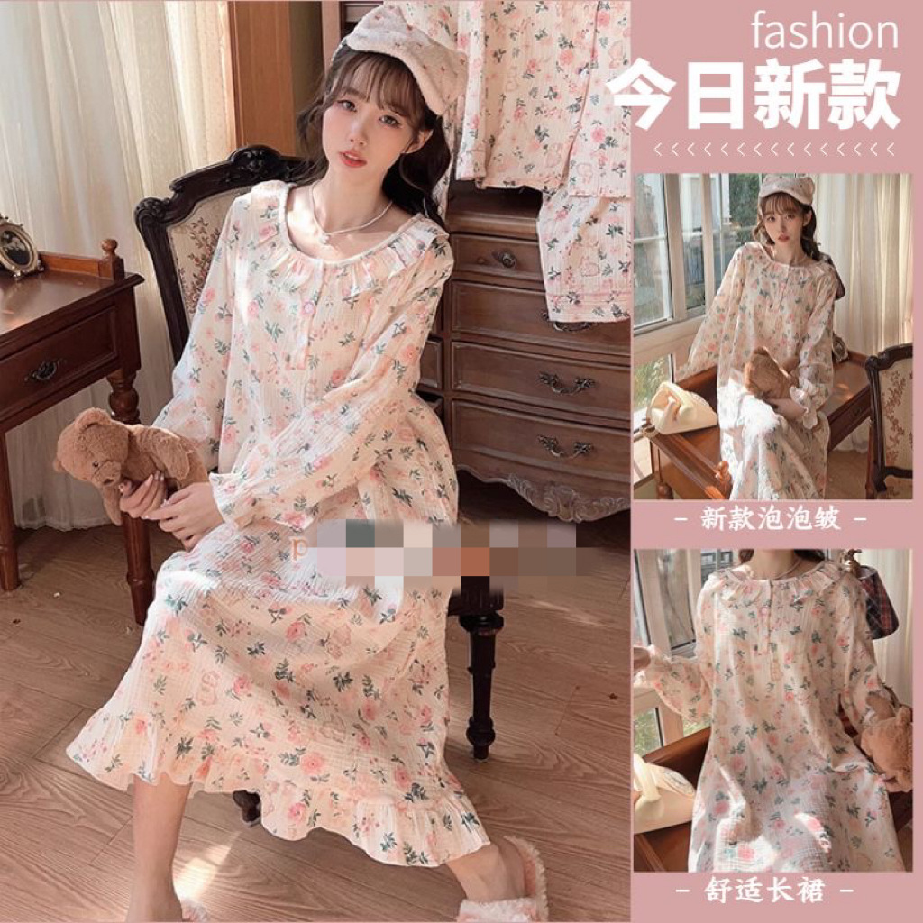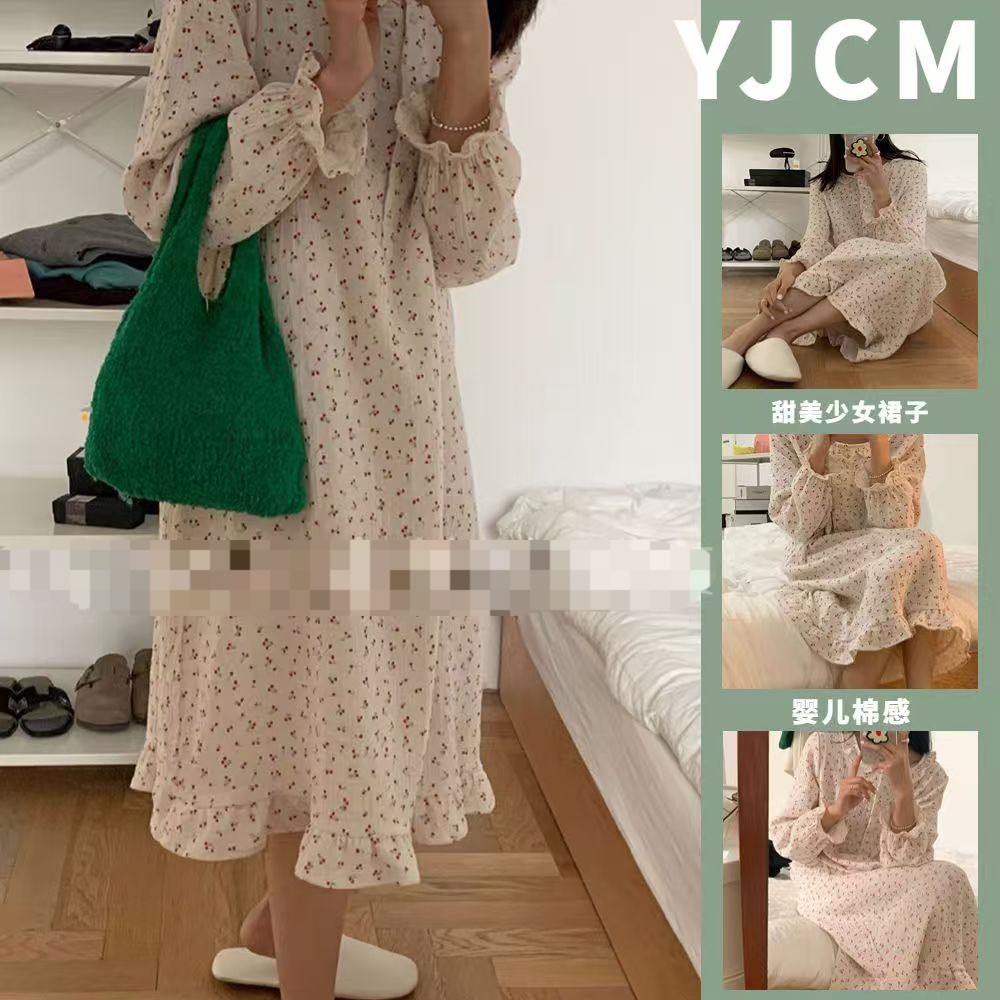 동대문 가을과 겨울 새로운 일본 스타일 부드러운 소녀 잠옷 스타일의 귀여운 소녀 꽃 얇은 홈 원피스 잠옷스토어 가기