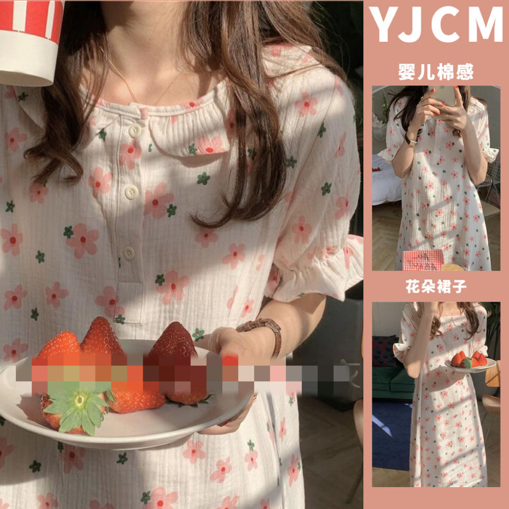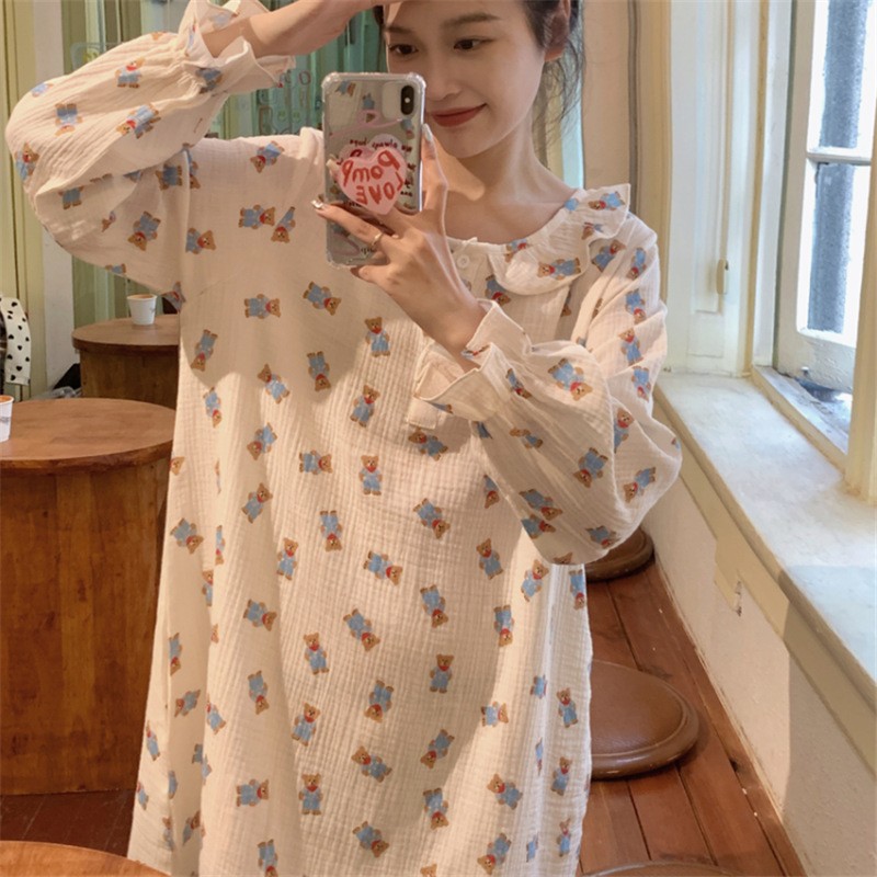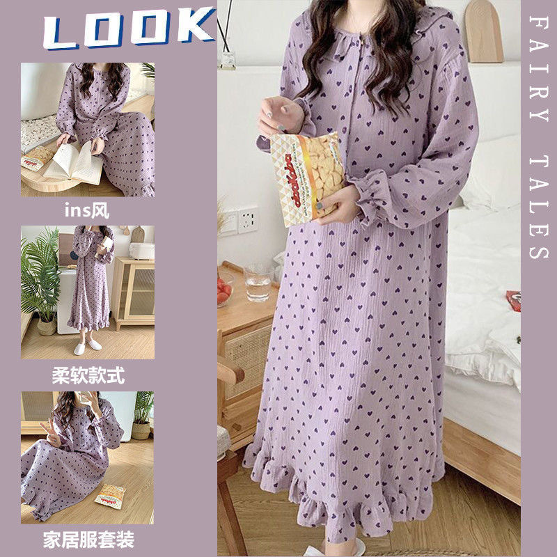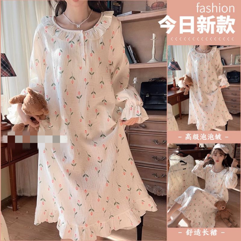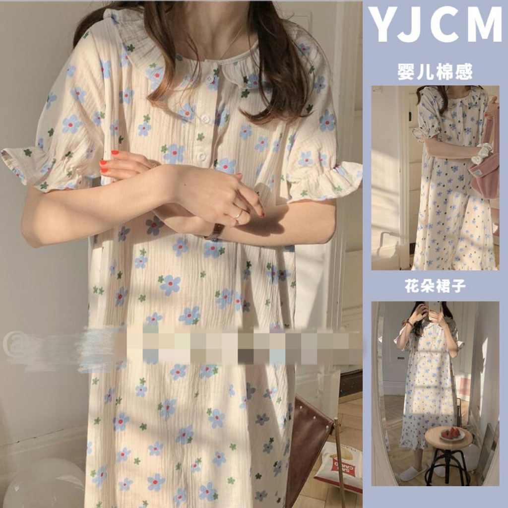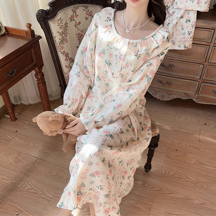 동대문 가을과 겨울 새로운 일본 스타일 부드러운 소녀 잠옷 스타일의 귀여운 소녀 꽃 얇은 홈 원피스 잠옷스토어 가기