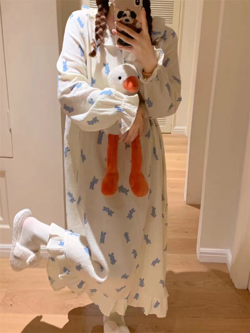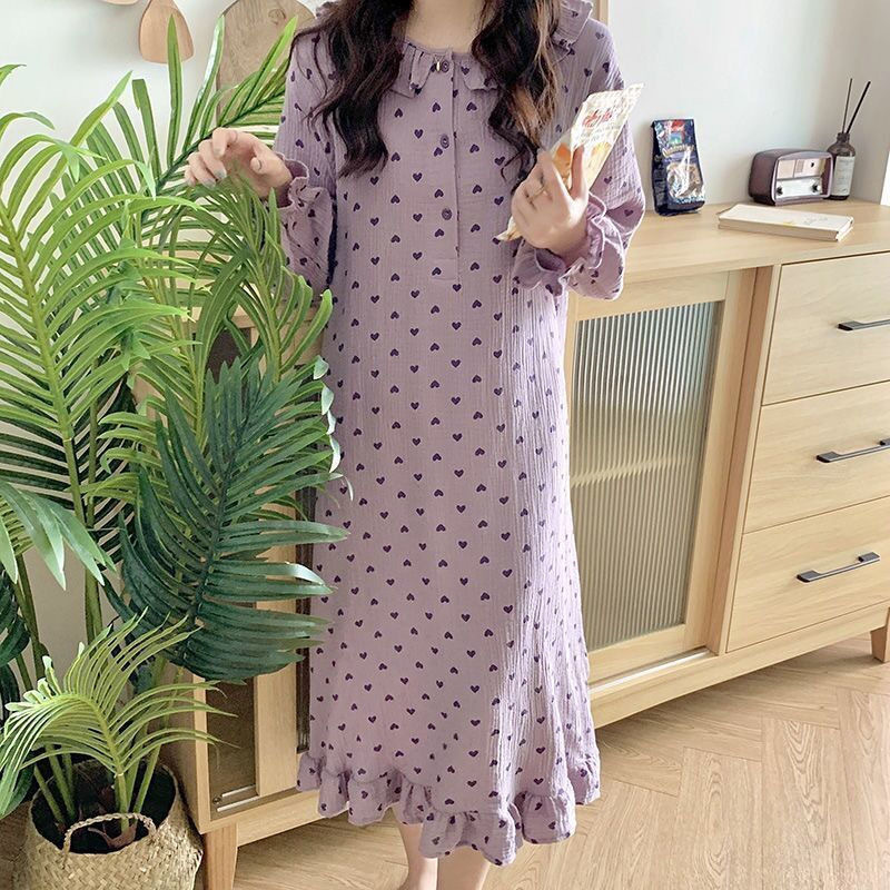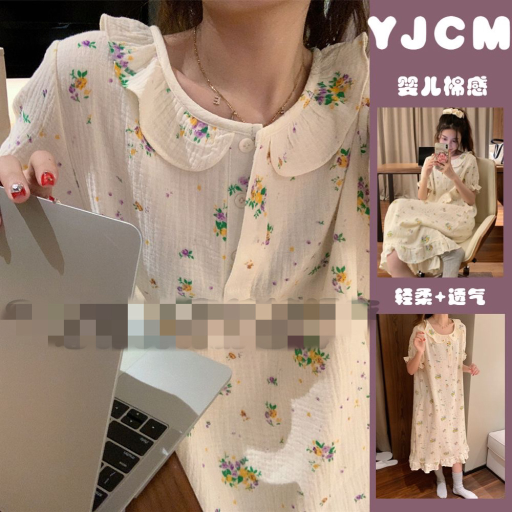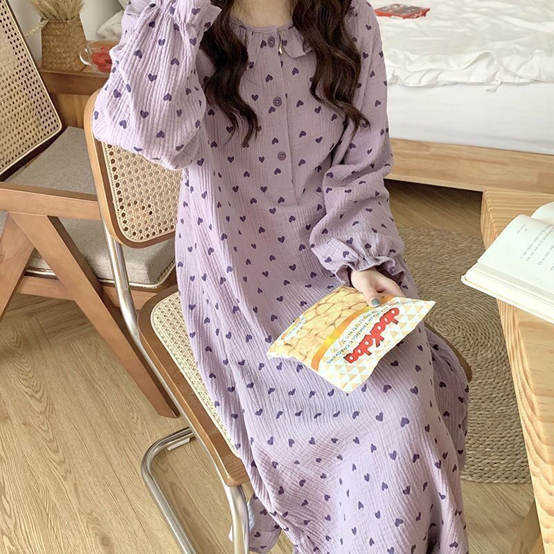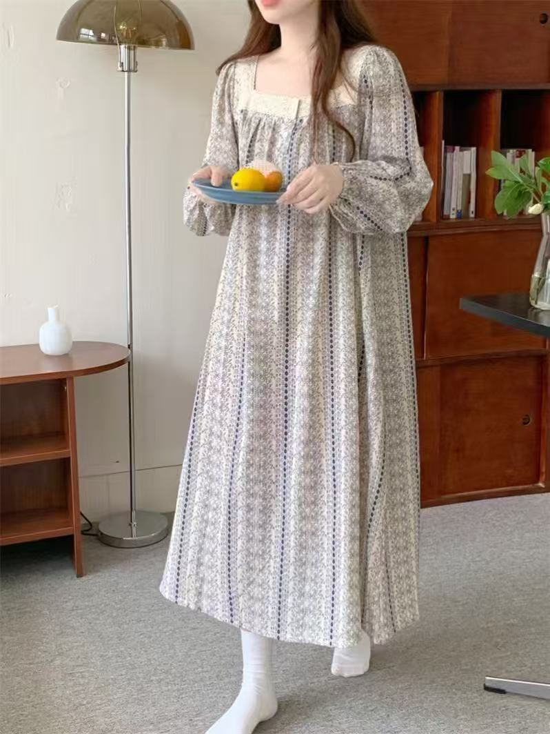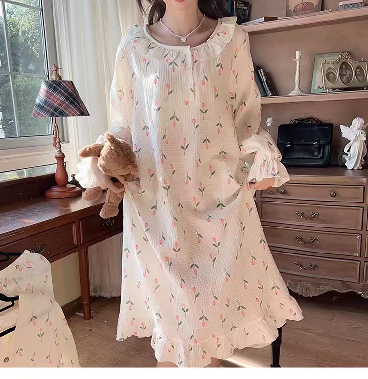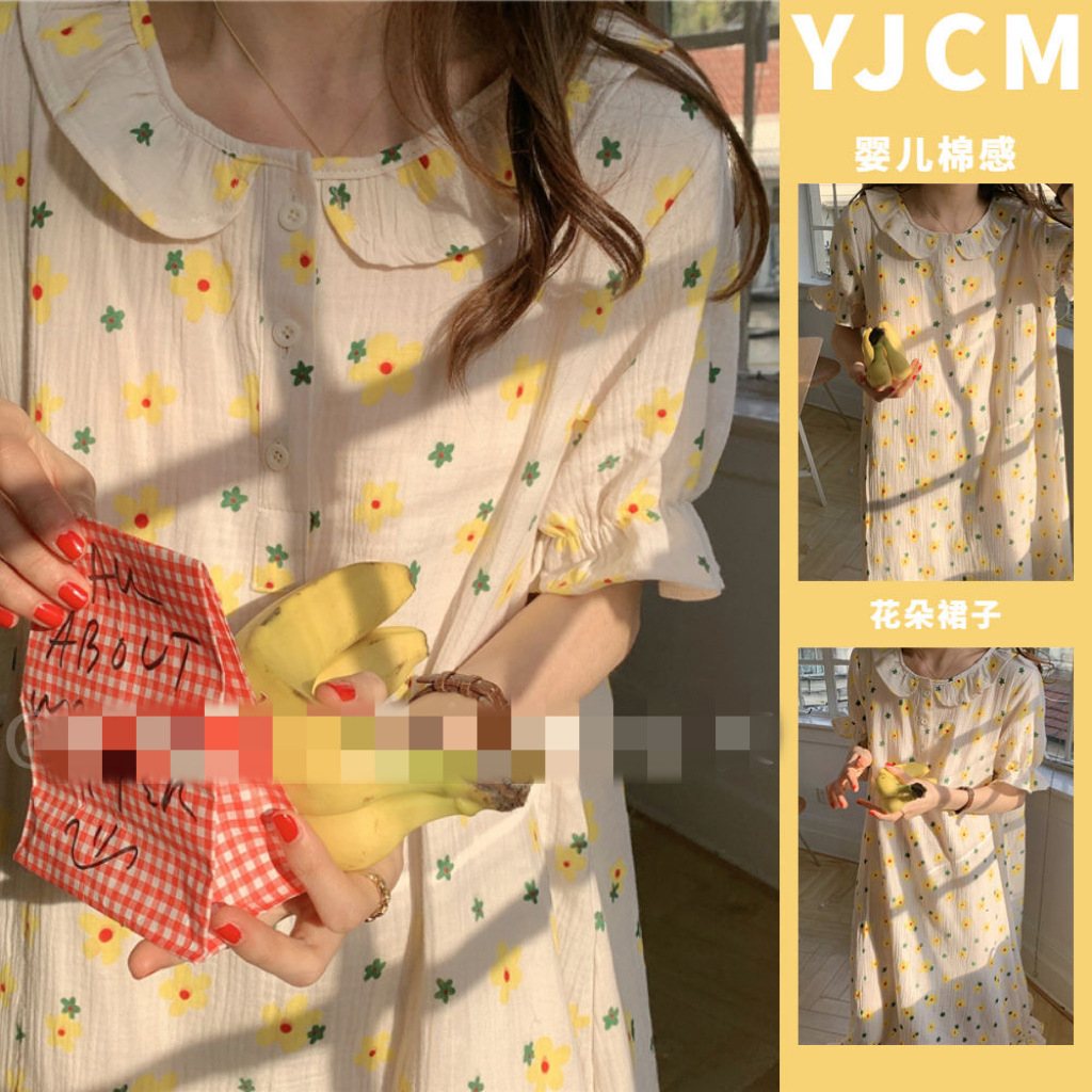 동대문 가을과 겨울 새로운 일본 스타일 부드러운 소녀 잠옷 스타일의 귀여운 소녀 꽃 얇은 홈 원피스 잠옷스토어 가기