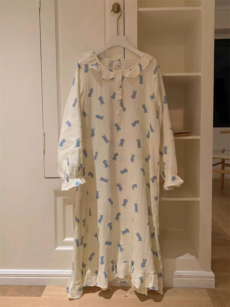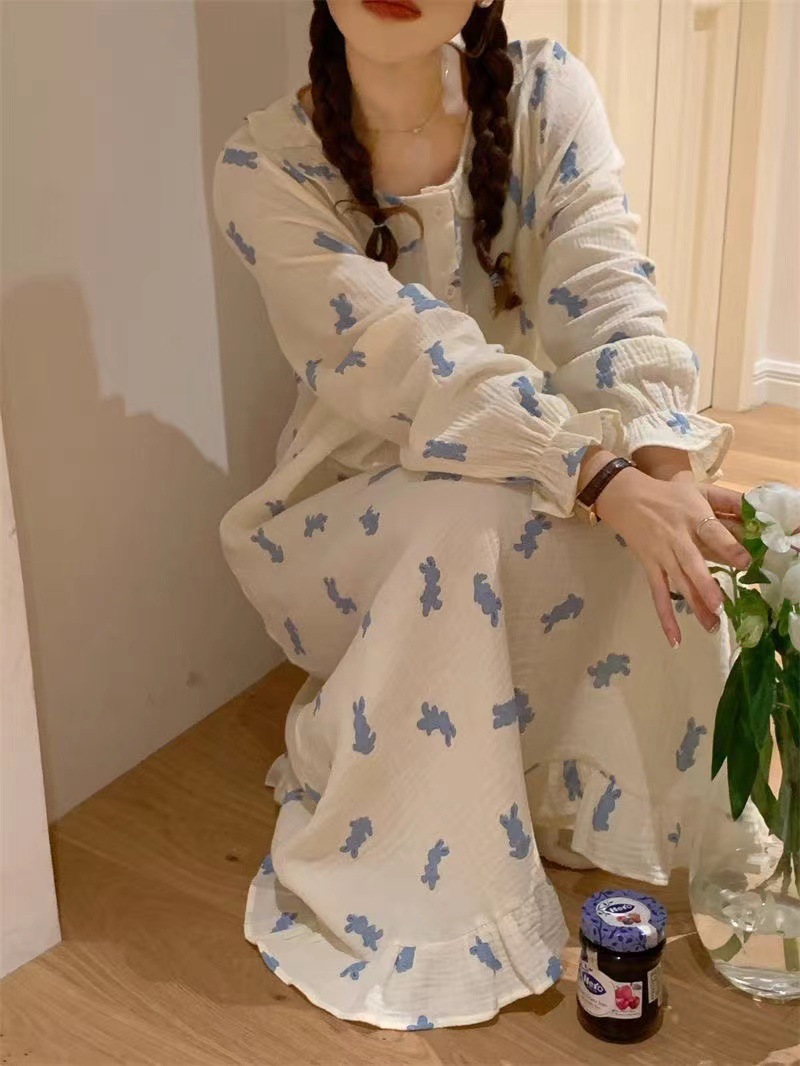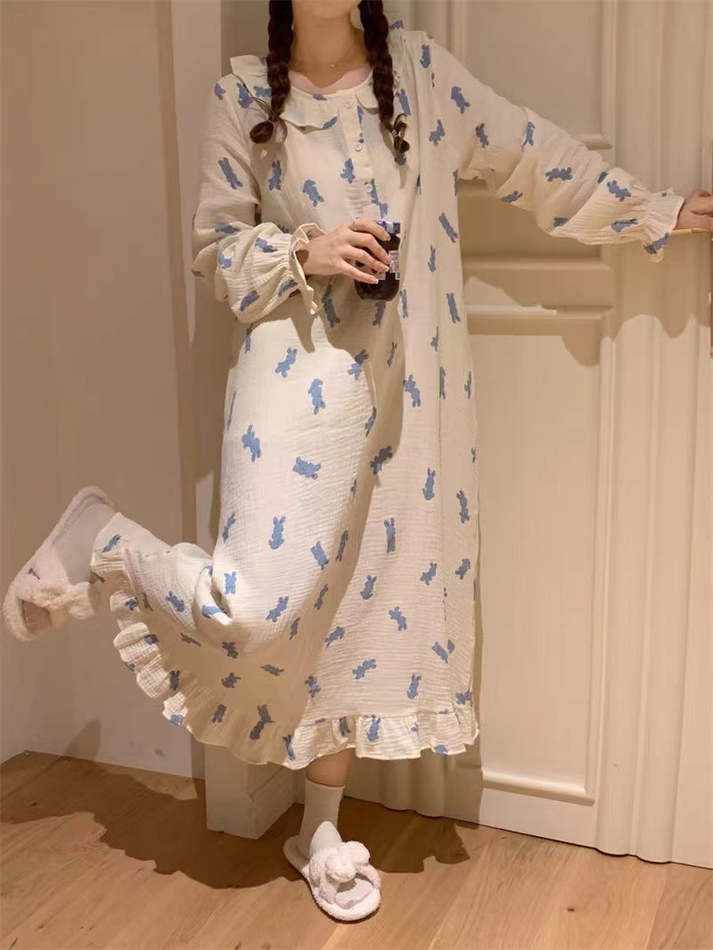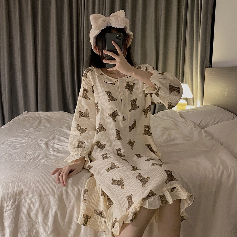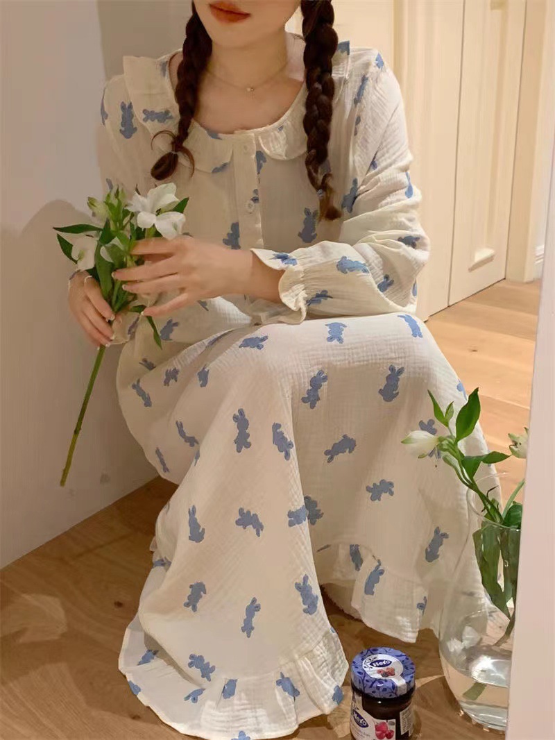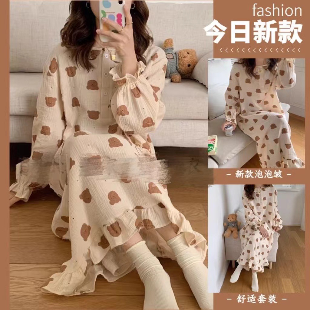 동대문 가을과 겨울 새로운 일본 스타일 부드러운 소녀 잠옷 스타일의 귀여운 소녀 꽃 얇은 홈 원피스 잠옷스토어 가기