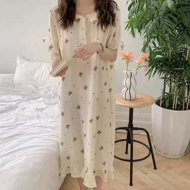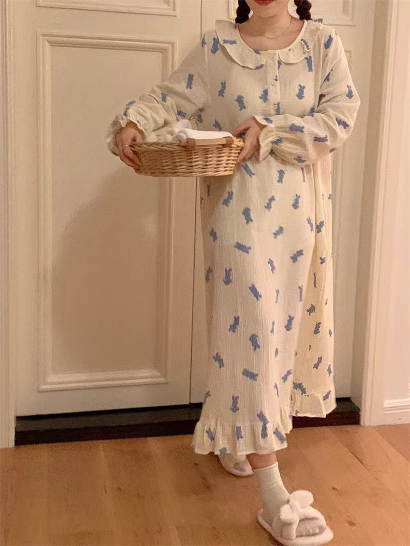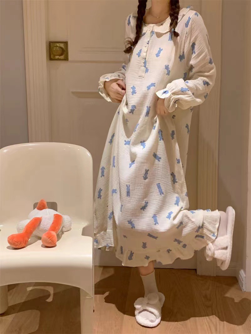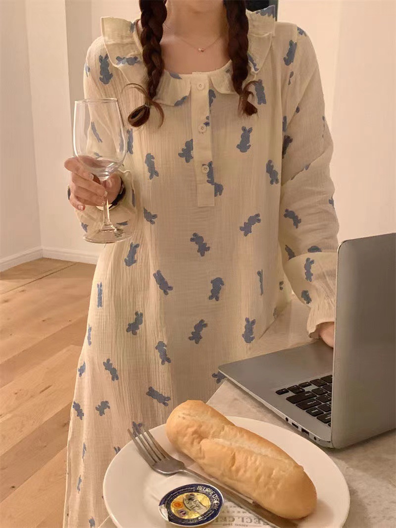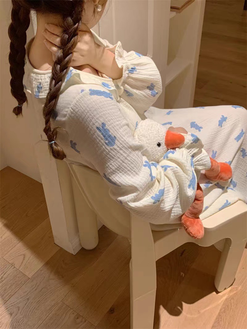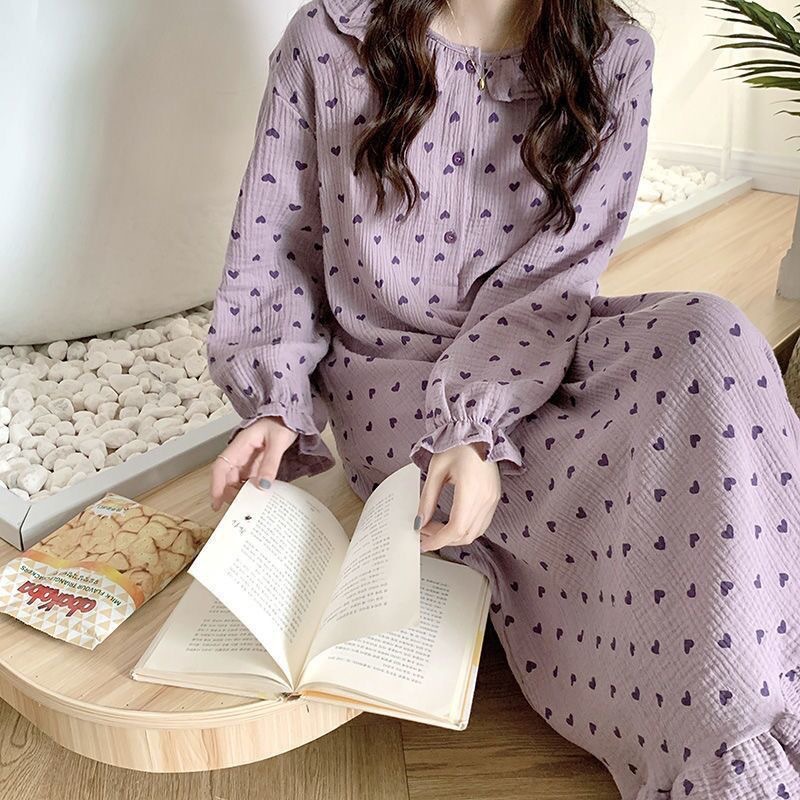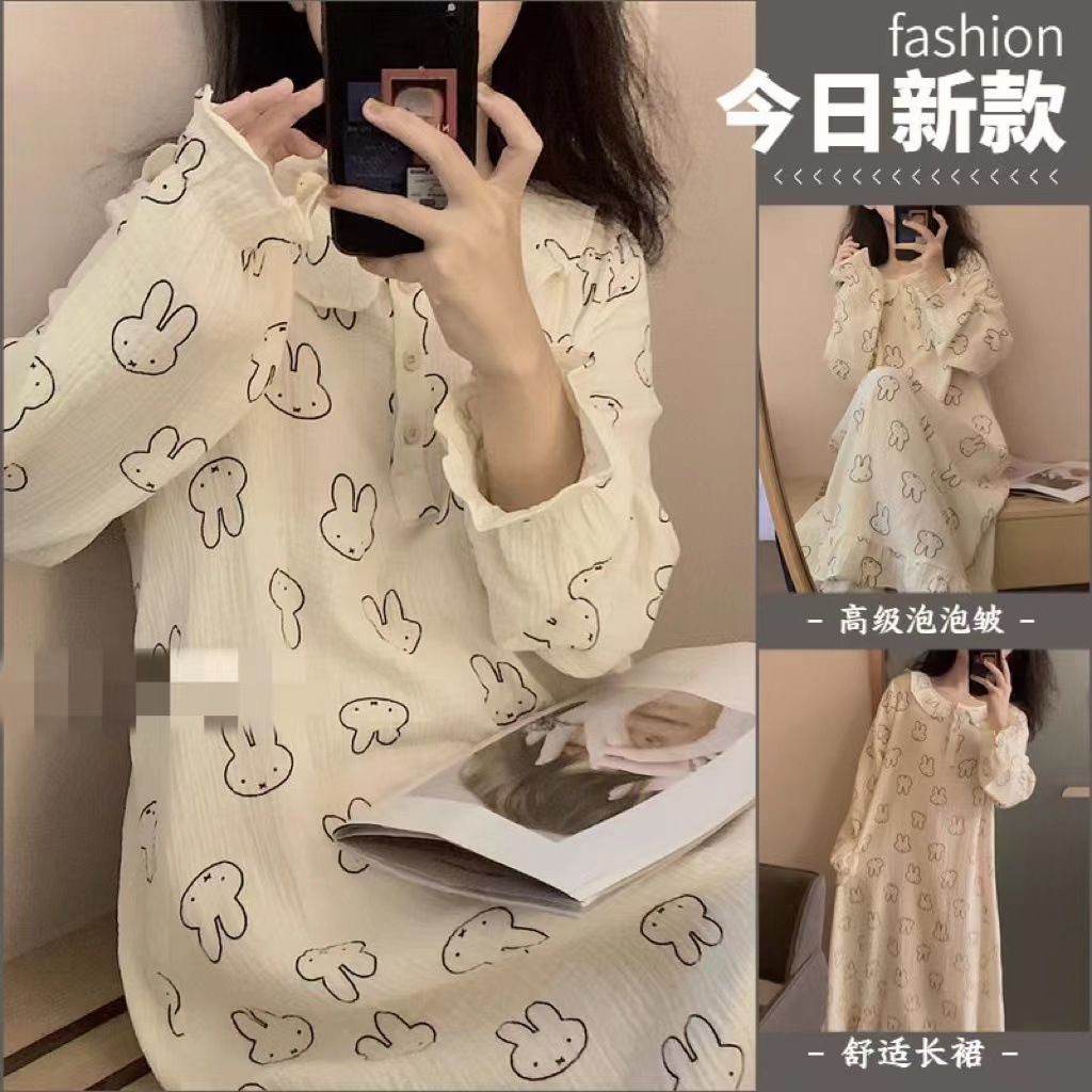 동대문 가을과 겨울 새로운 일본 스타일 부드러운 소녀 잠옷 스타일의 귀여운 소녀 꽃 얇은 홈 원피스 잠옷스토어 가기