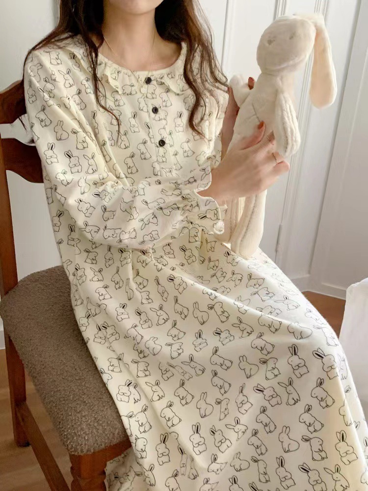 • CJH 긴 원피스-전체 인쇄 작은 토끼