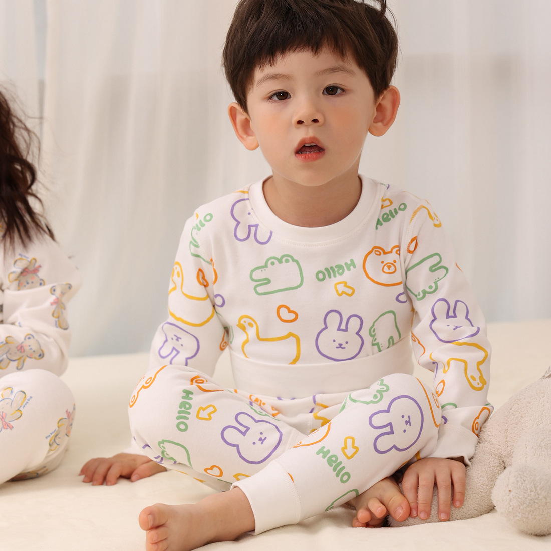 남아 여아 아기의 가을 옷과 바지 세트 면 아기 속옷 어린이 하이 웨이스트 배꼽 보호 가방 배꼽 잠옷스토어 가기