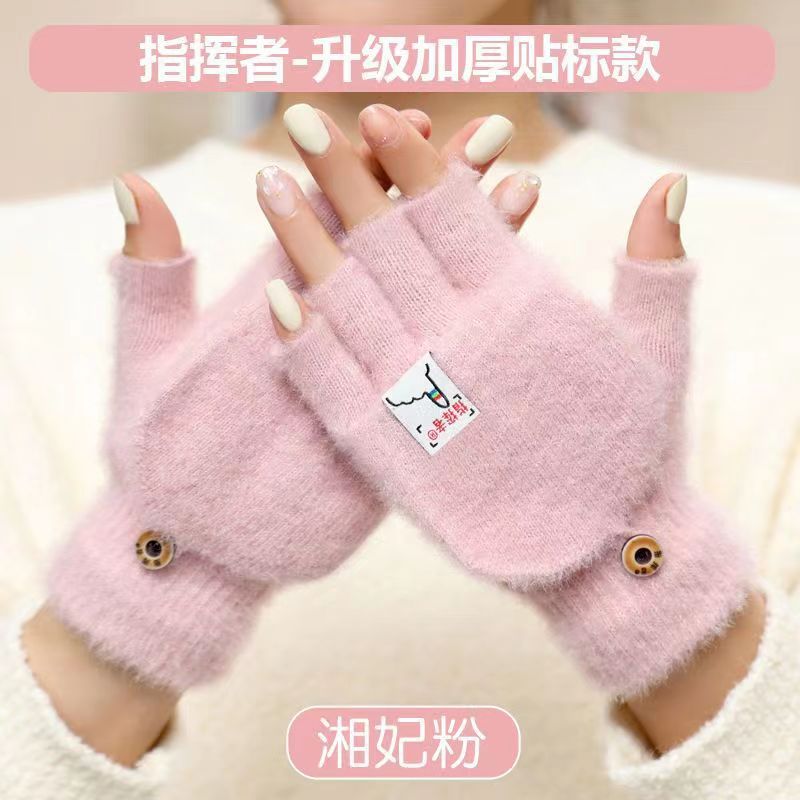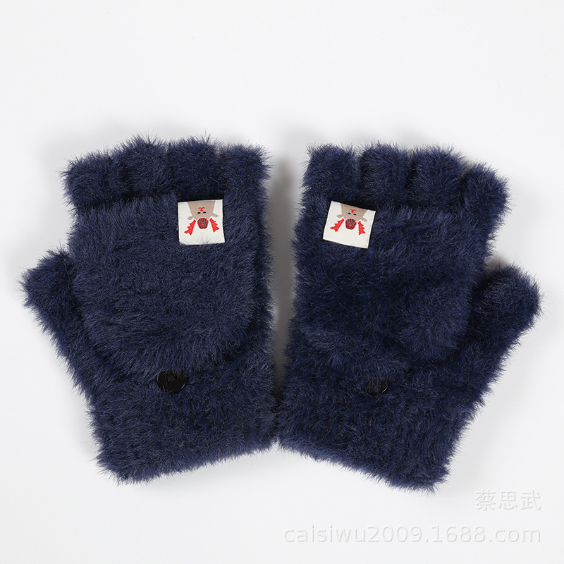 플러시 플랩형 반손가락 겨울 방풍 보온 사슴뿔 모양 모조 밍크 벨벳 학생용 글쓰기 및 숙제용 사무용 장갑 방한용스토어 가기