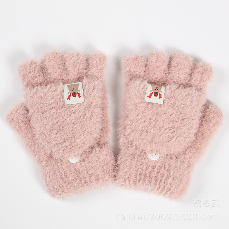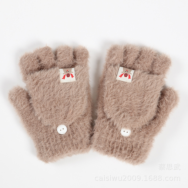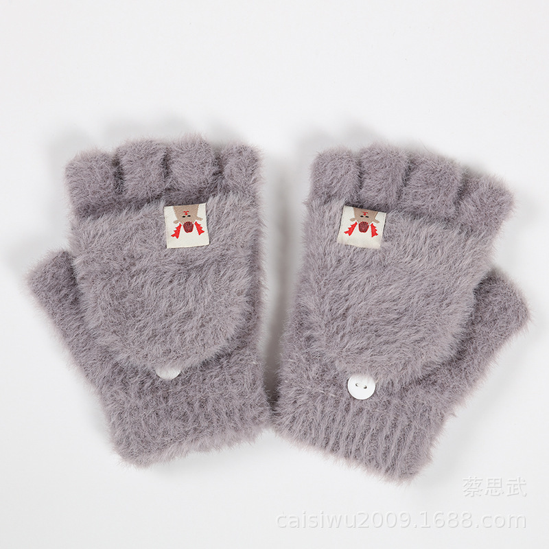 플러시 플랩형 반손가락 겨울 방풍 보온 사슴뿔 모양 모조 밍크 벨벳 학생용 글쓰기 및 숙제용 사무용 장갑 방한용