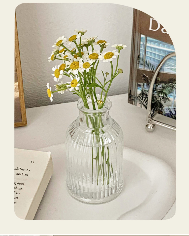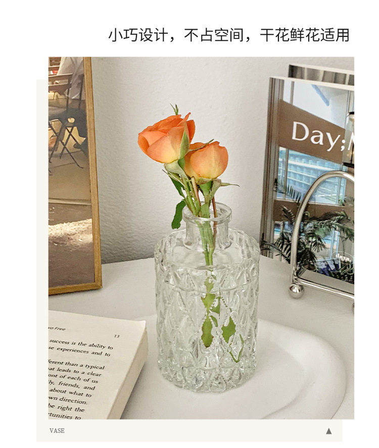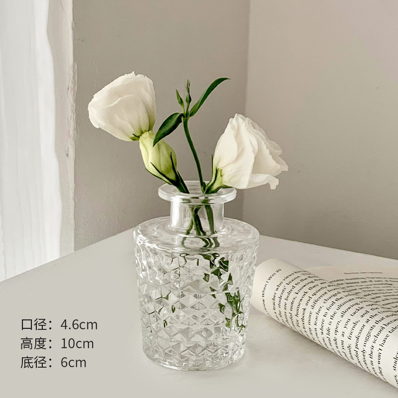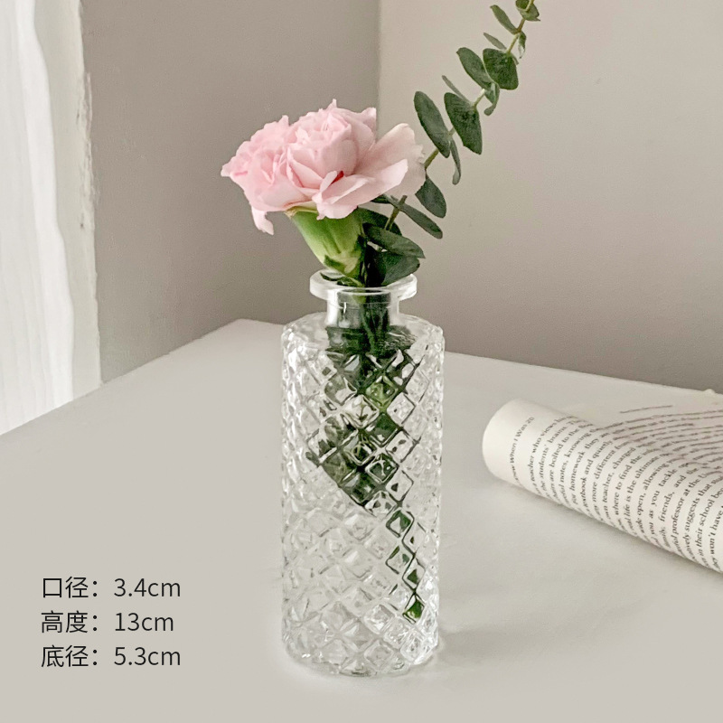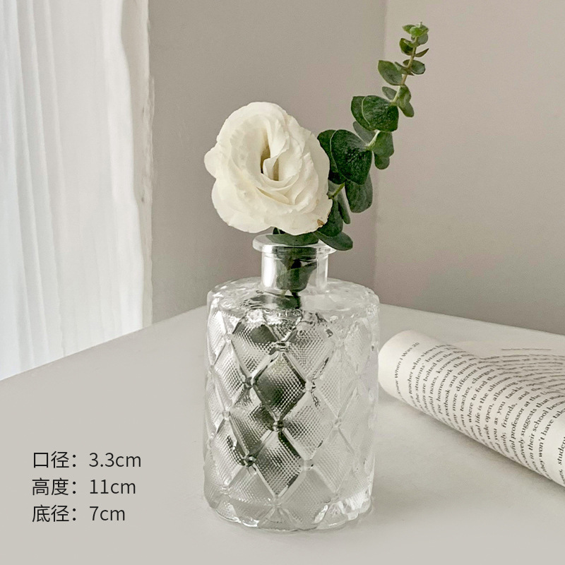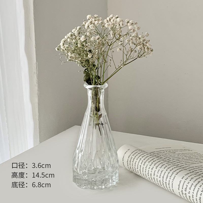 프렌치 스타일의 레트로 양각 유리 꽃병, 수경 꽃꽂이, 투명한 꽃, 탁상 장식, 심플하고 신선한 디자인