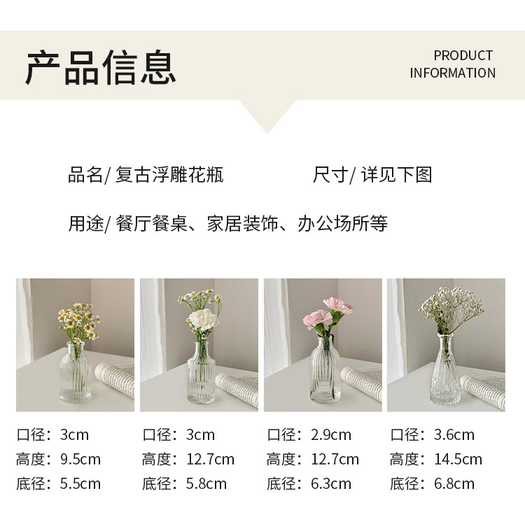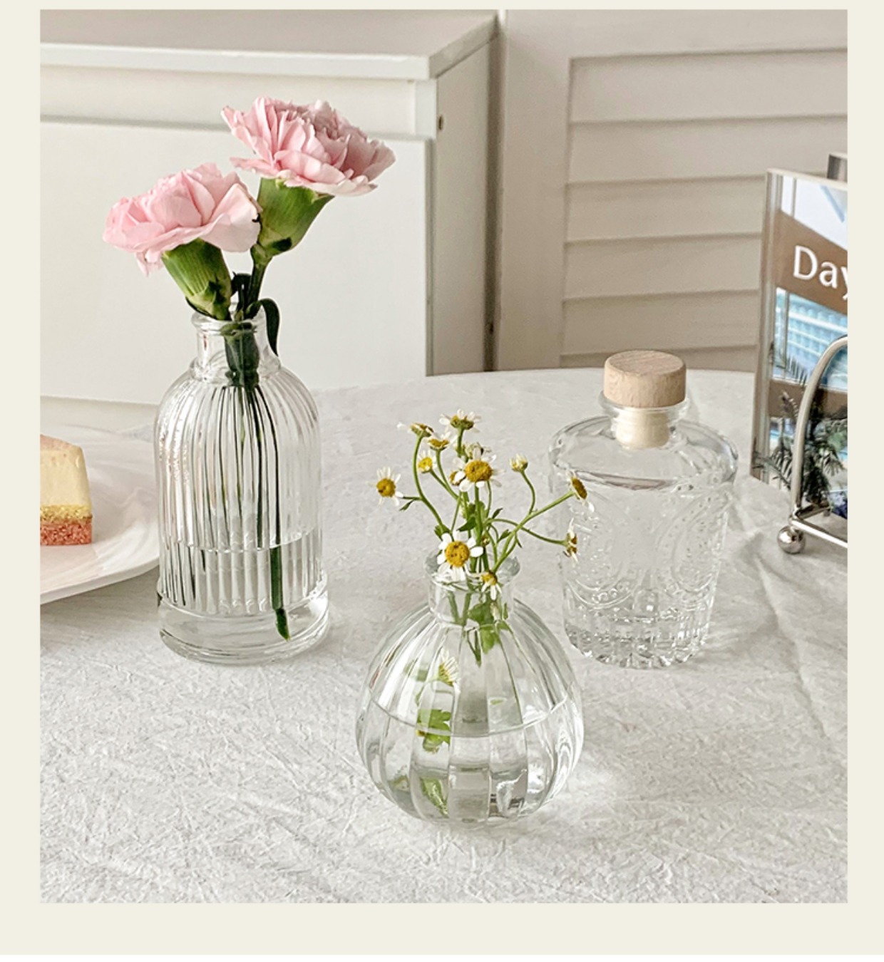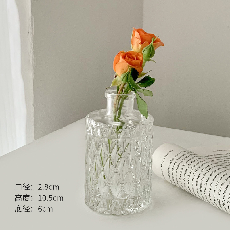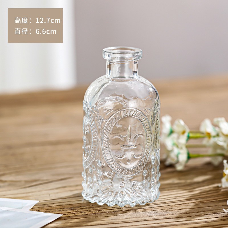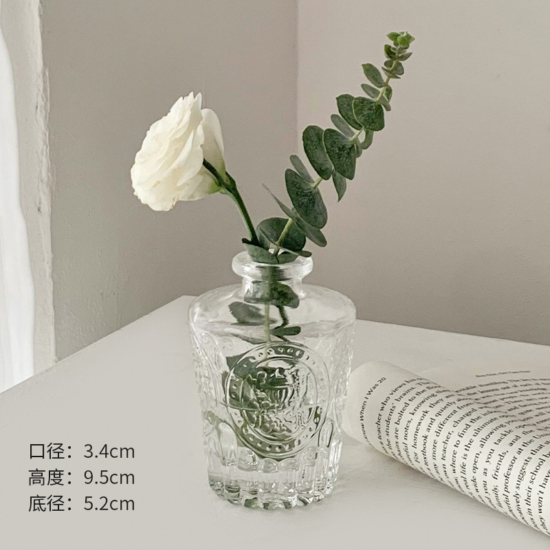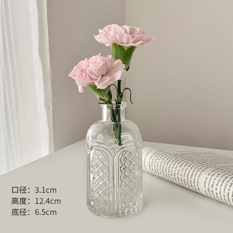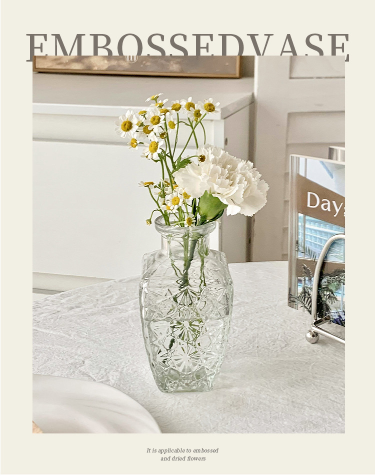 프렌치 스타일의 레트로 양각 유리 꽃병, 수경 꽃꽂이, 투명한 꽃, 탁상 장식, 심플하고 신선한 디자인스토어 가기