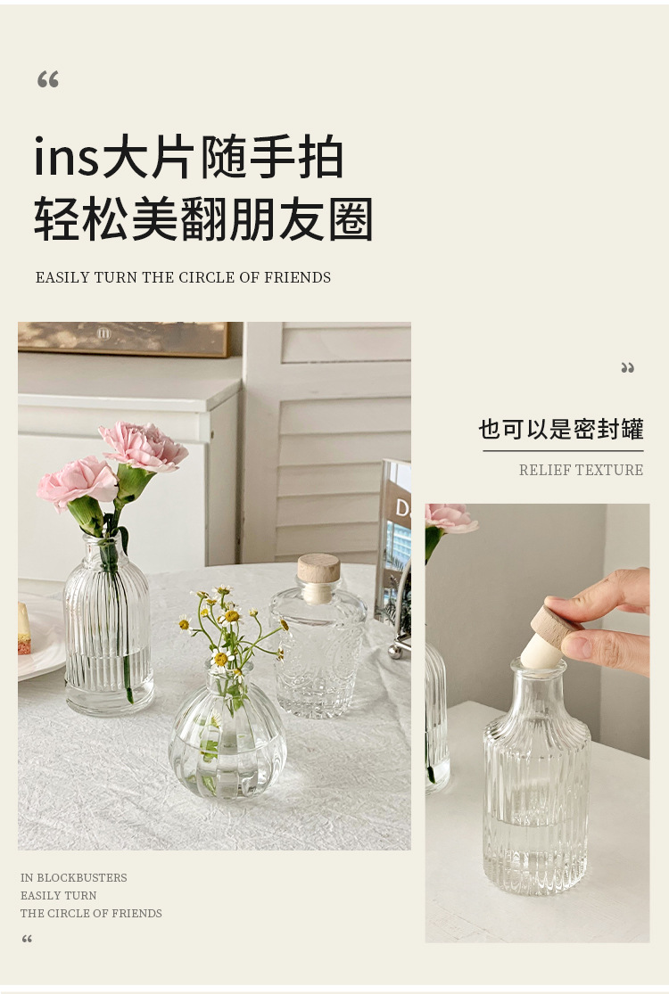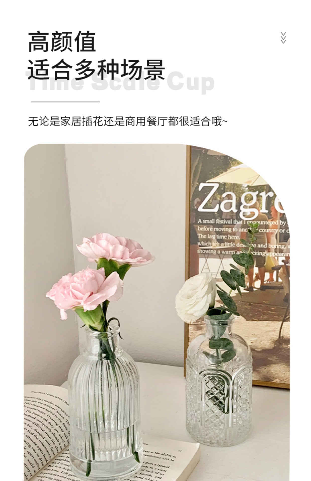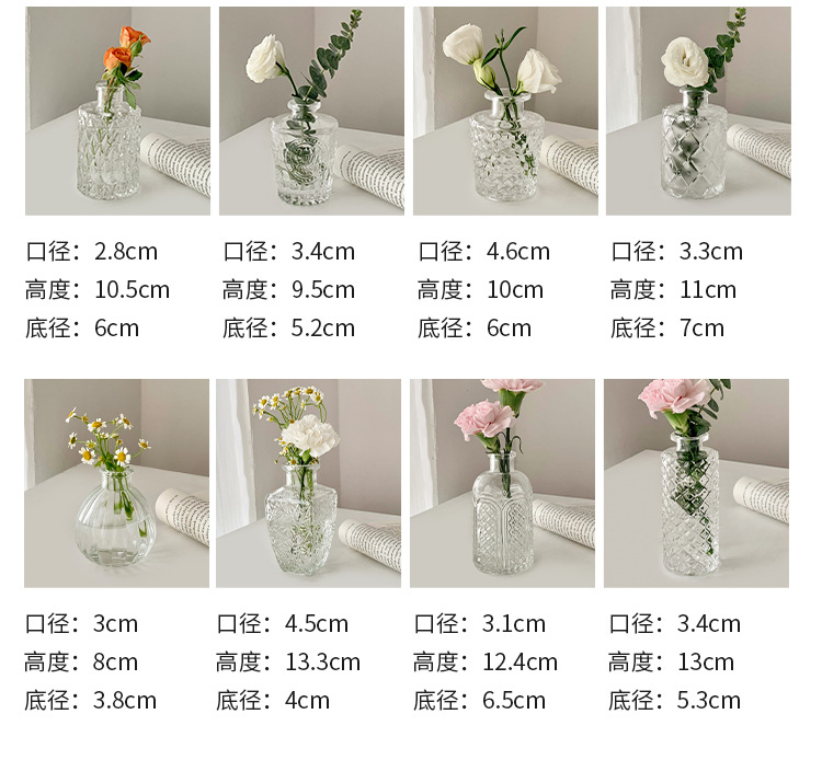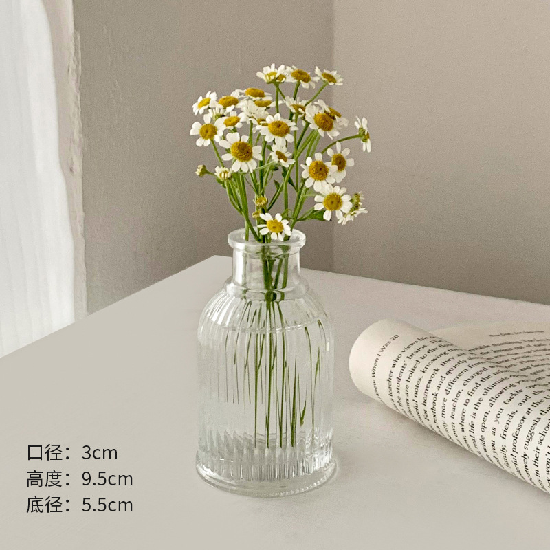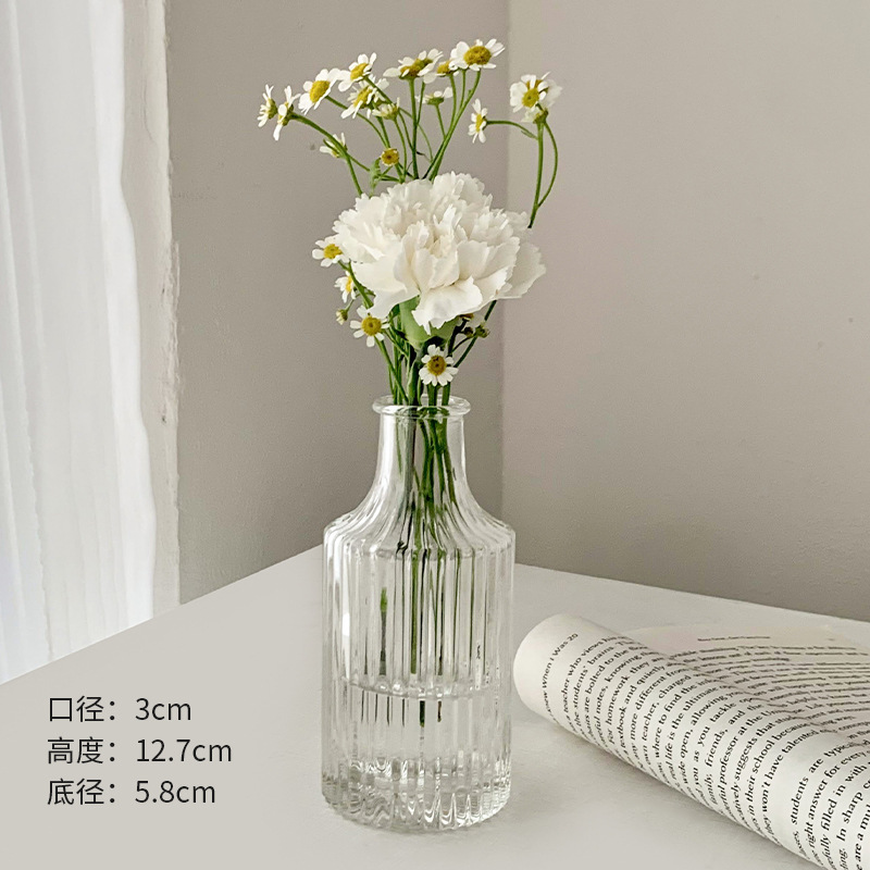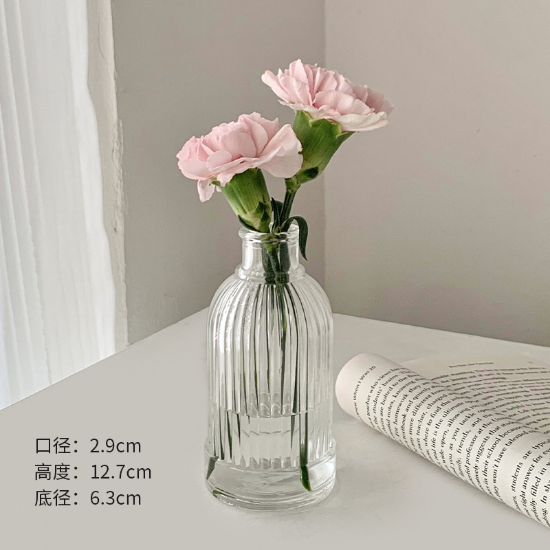 프렌치 스타일의 레트로 양각 유리 꽃병, 수경 꽃꽂이, 투명한 꽃, 탁상 장식, 심플하고 신선한 디자인스토어 가기