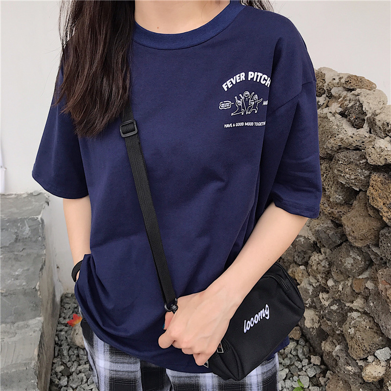 여름 새로운 전면 및 후면 인쇄 반팔 티셔츠 여성용 라운드 넥 캐주얼 느슨한 동남아시아 여성 최고 도매 한국어 버전스토어 가기