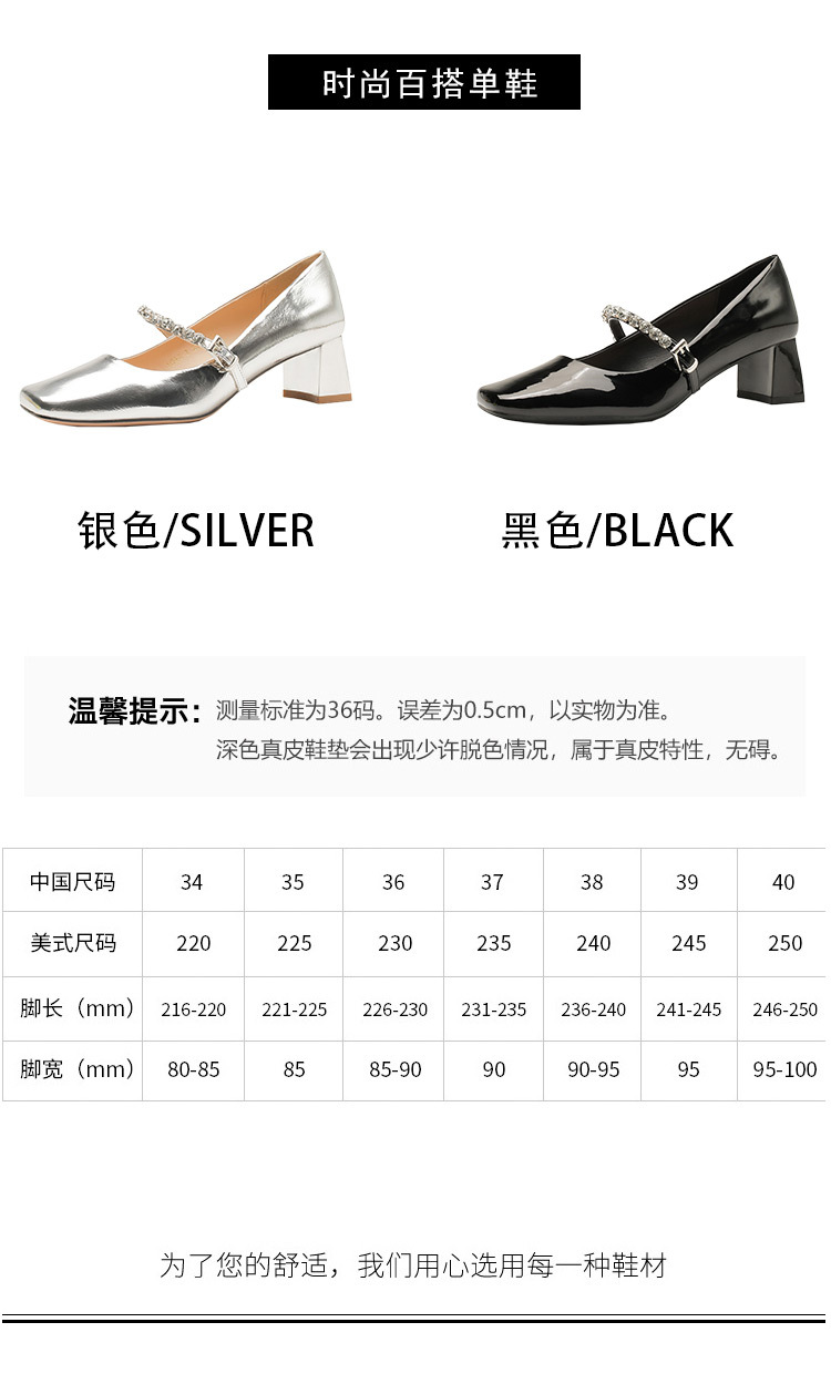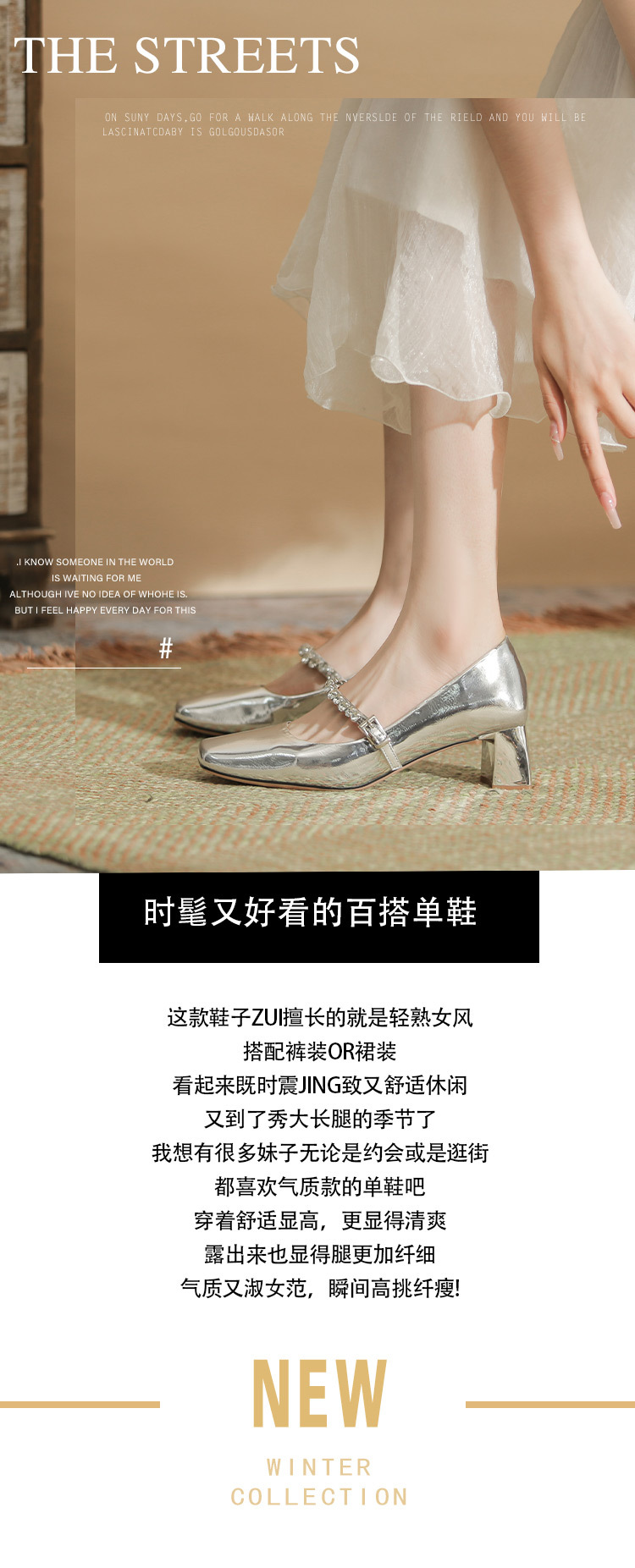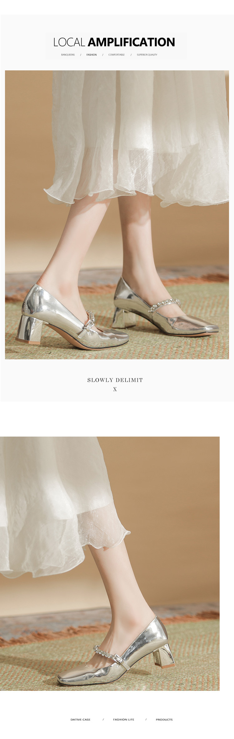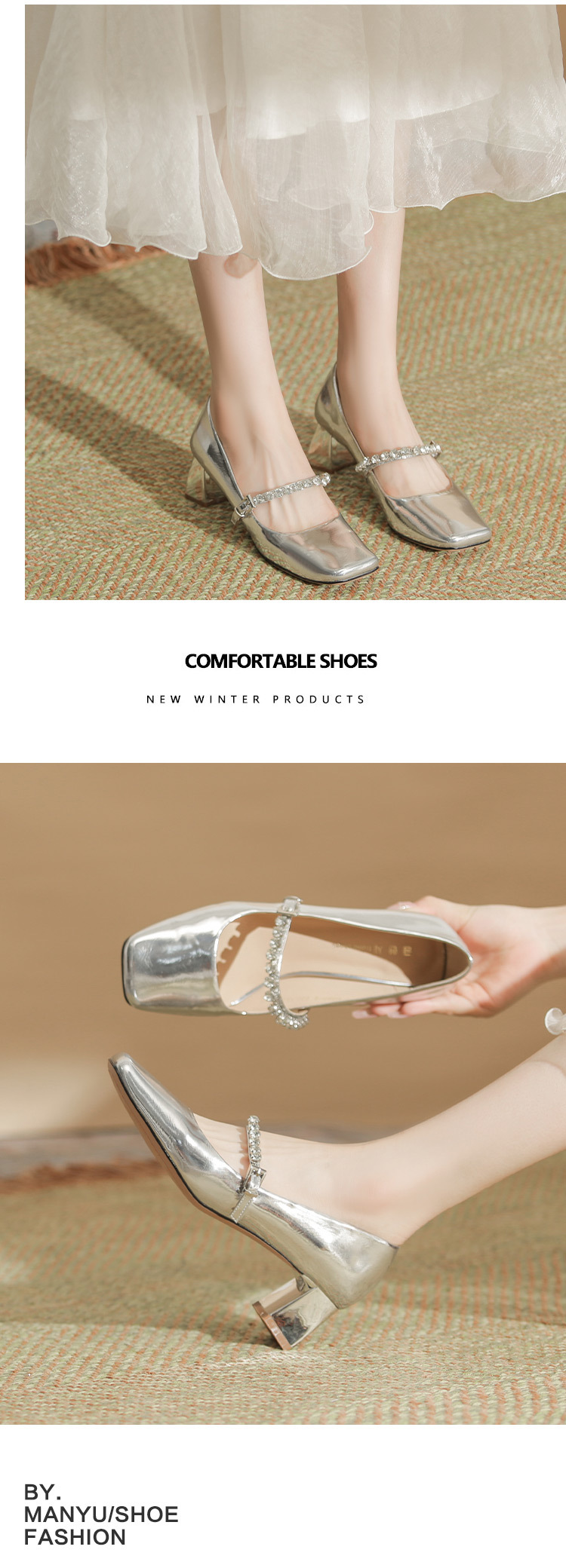 H988-2 빈티지 에나멜 가죽 메리 제인 신발 여성용 실버 싱글 레이어 신발 다이아몬드 벨트와 두꺼운 굽 유행 모든 일치 새로운 여성 신발스토어 가기