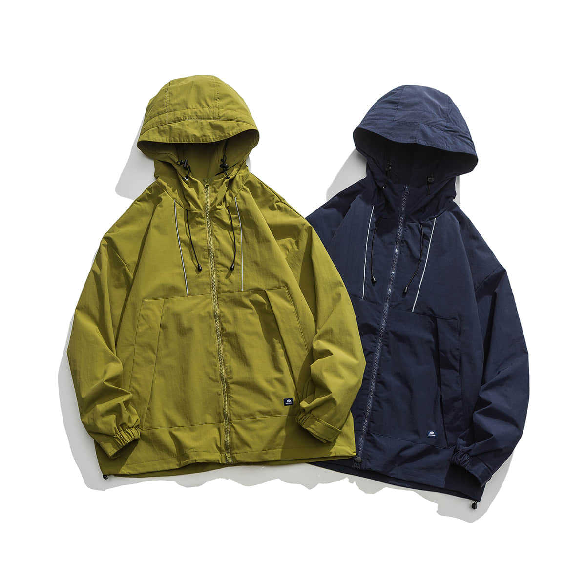 베이지에 남성복 아메리칸 스타일 트렌디 브랜드 2025 가을 신상 아웃도어 후드 재킷 솔리드 컬러 방풍 재킷 워크웨어 코트스토어 가기