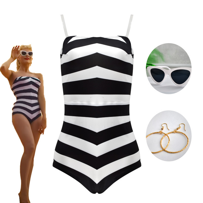 • 여성용 흑백 수영복 [수영복 + 안경 + 귀걸이]]