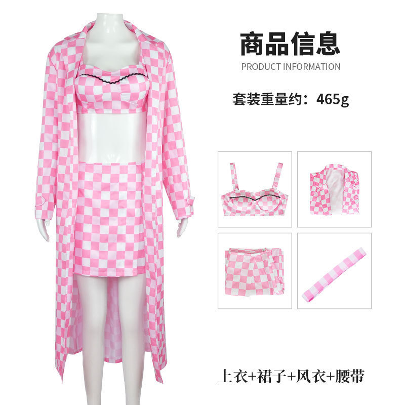 • 핑크 흰색 격자 무늬 스타일 [윈드 브레이커 + 가슴 + 치마 + 벨트