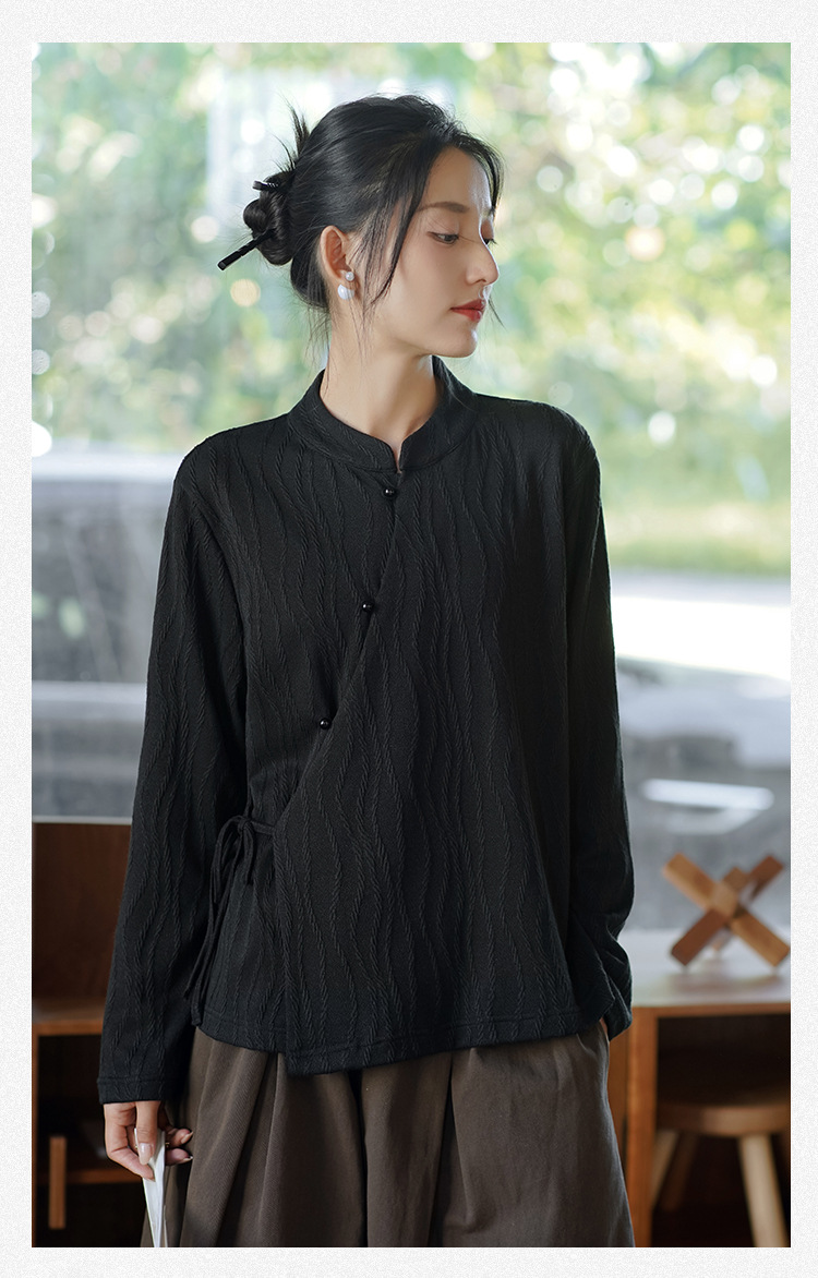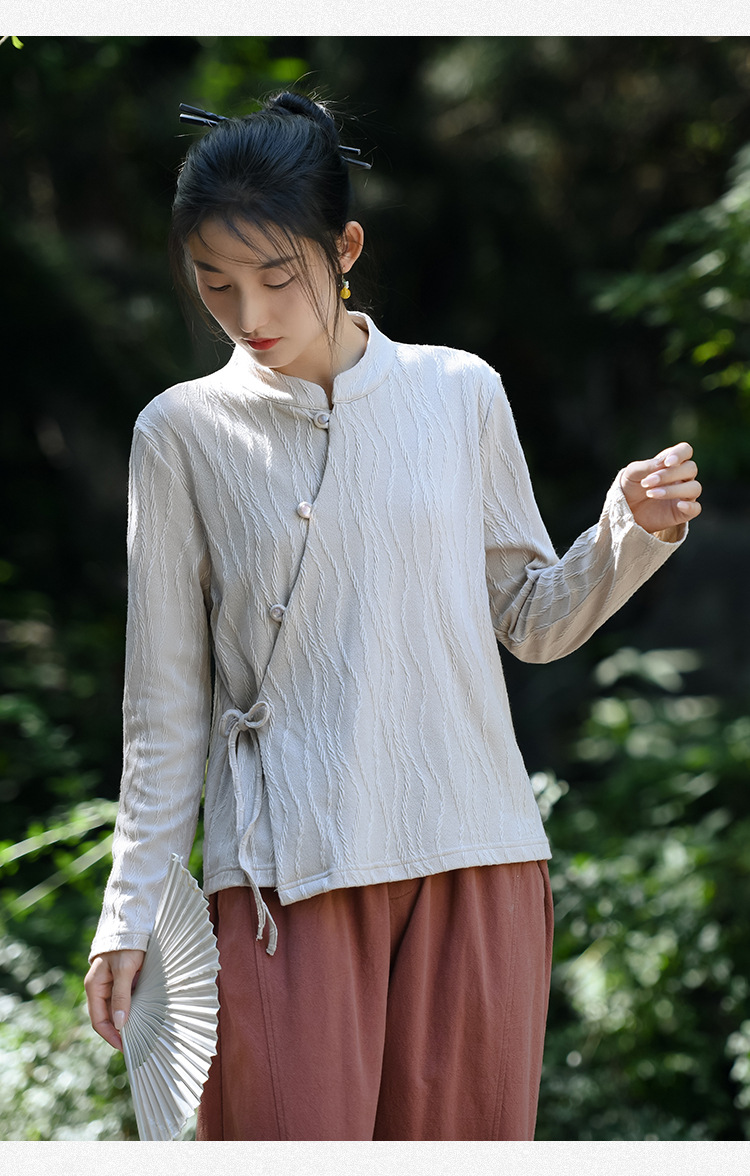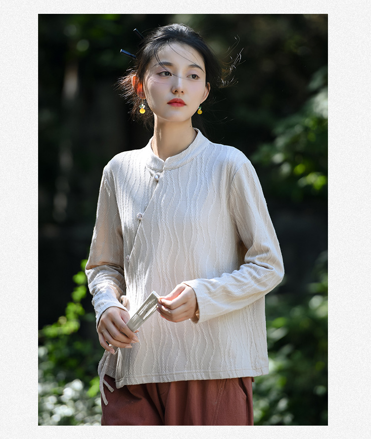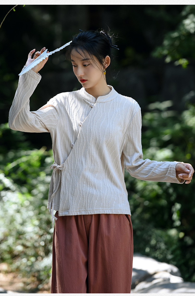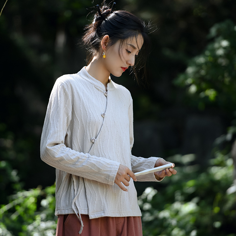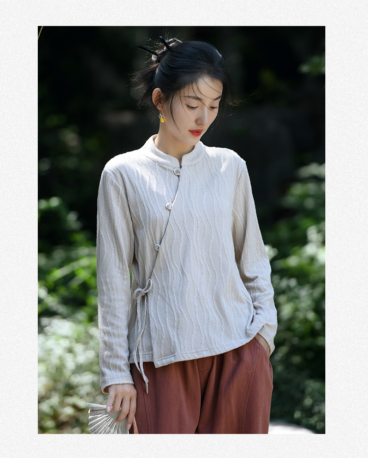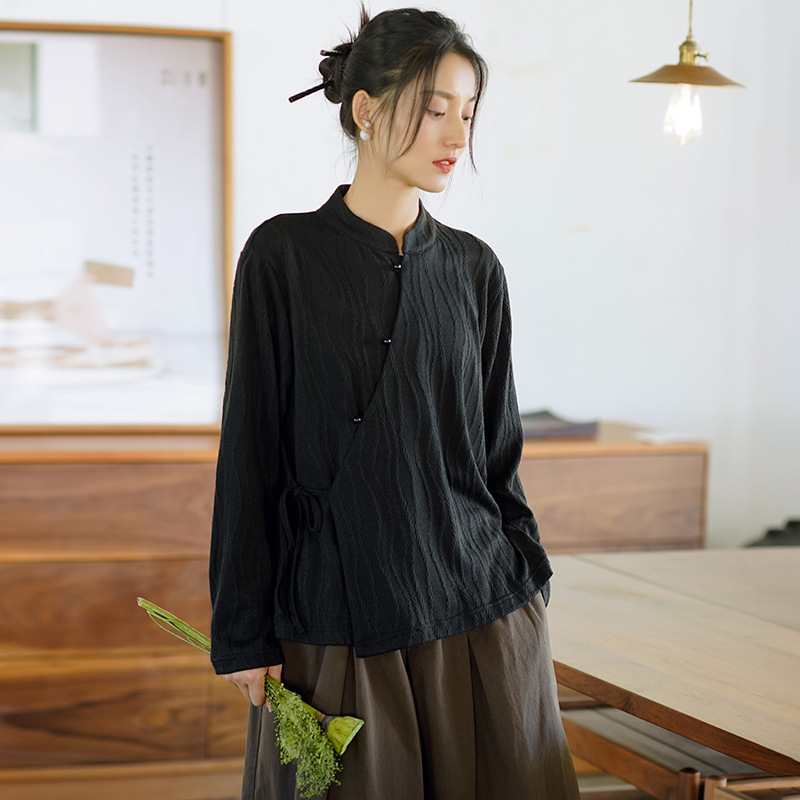 신중국풍 여성복 2025 봄 신상 레트로 탑 여성 중국풍 사선 단추 레이스업 자카드 아우터 도매스토어 가기