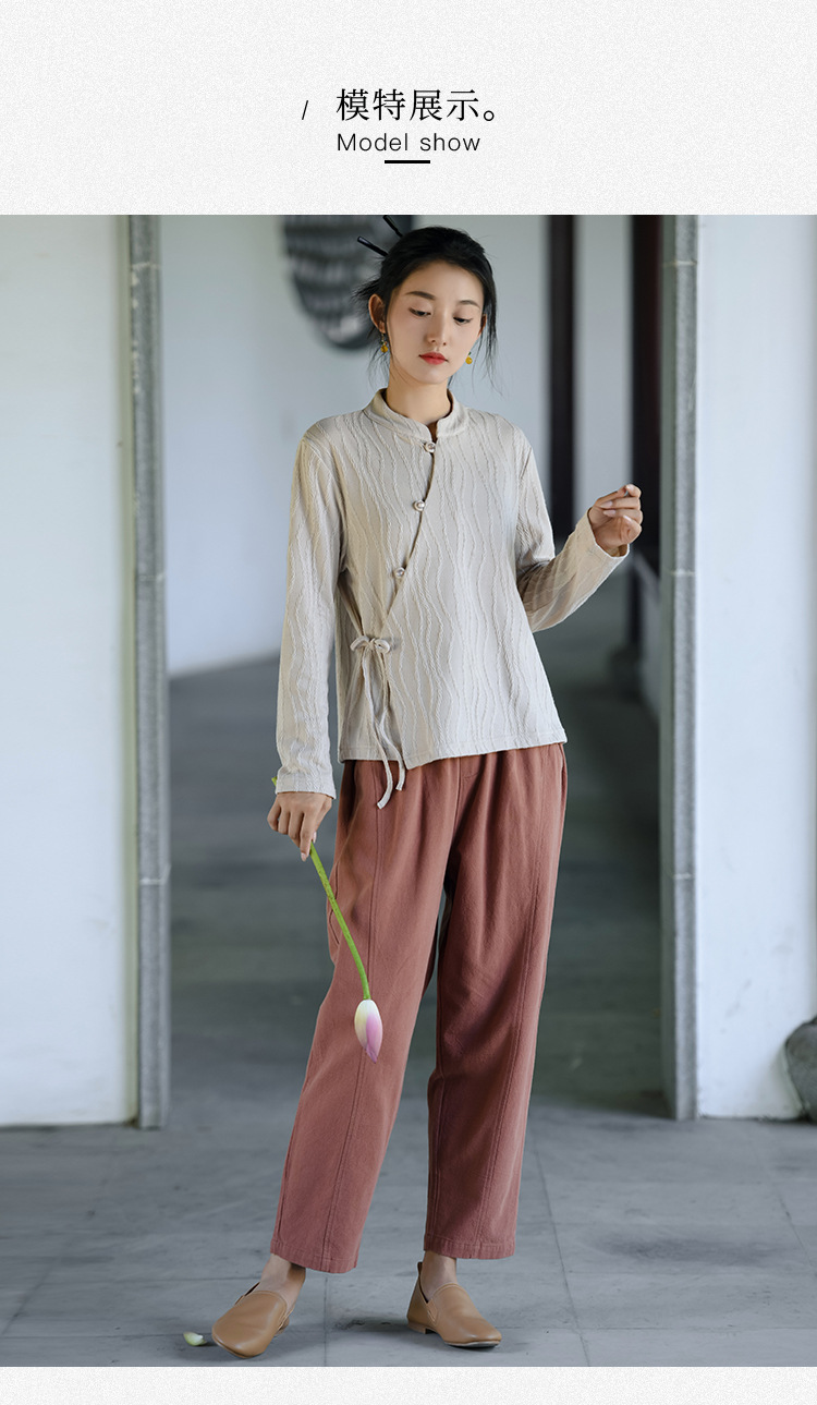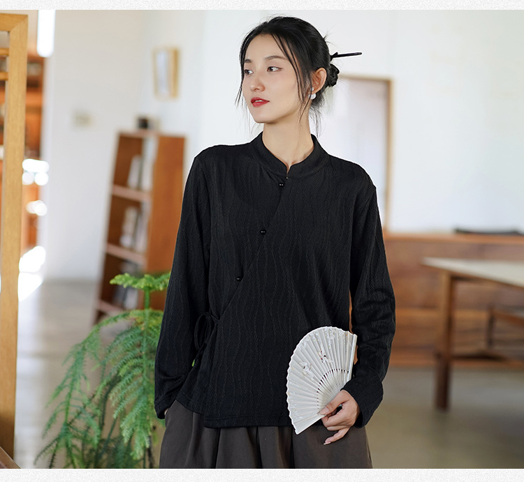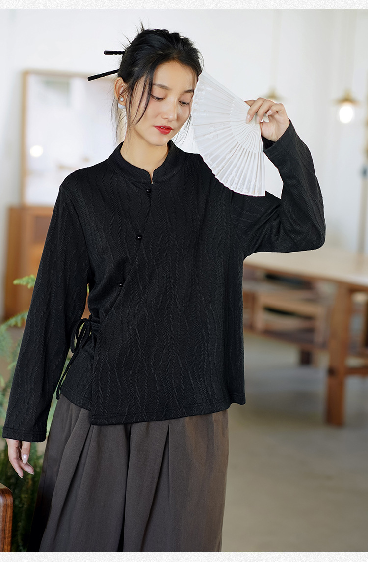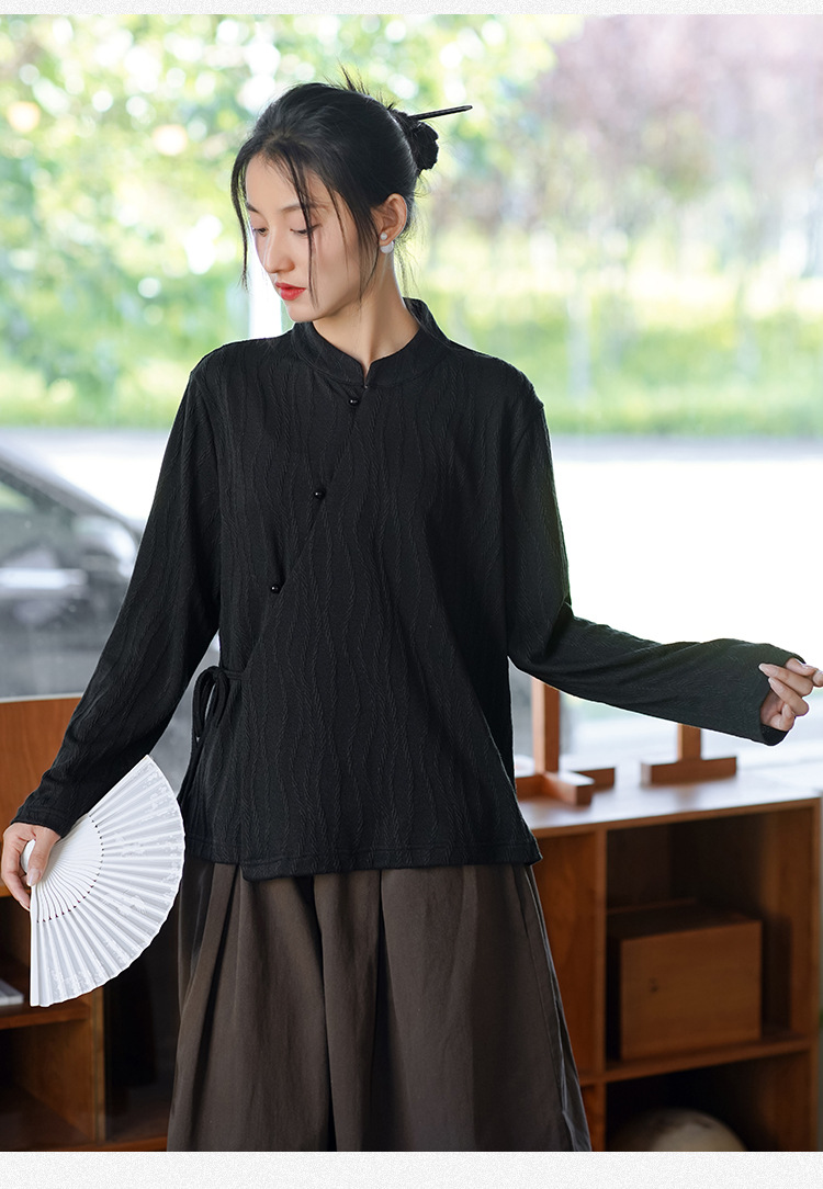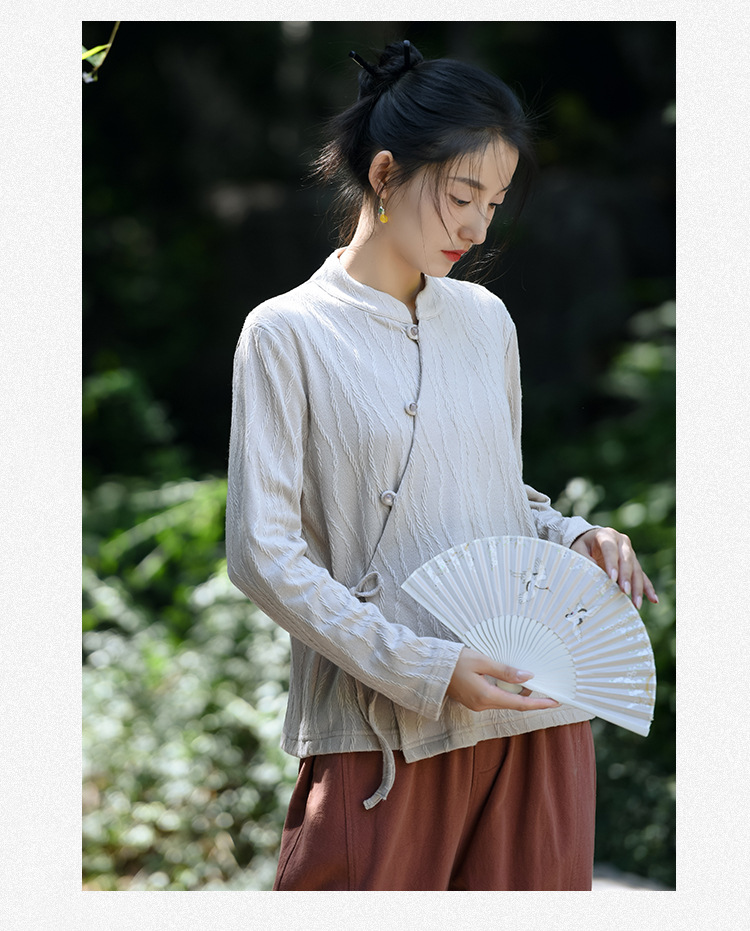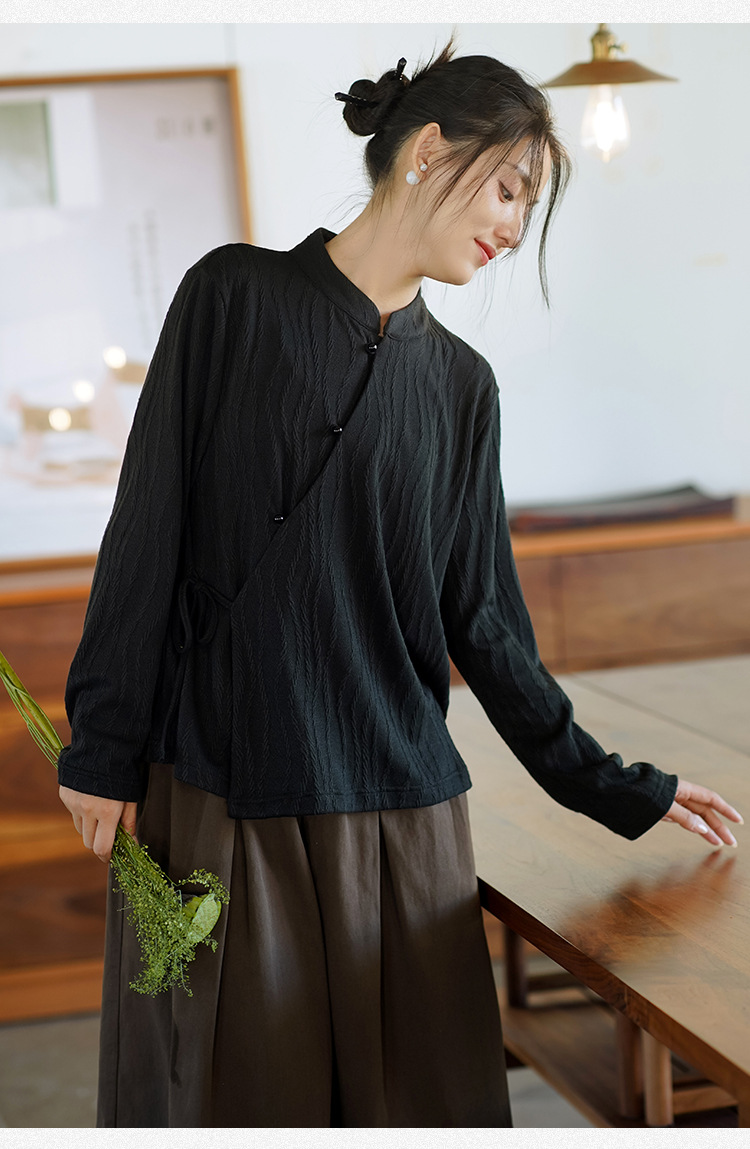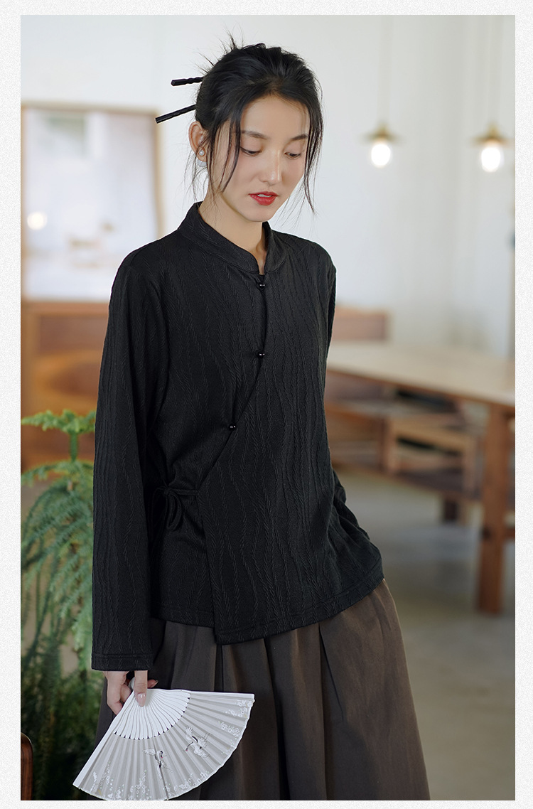 신중국풍 여성복 2025 봄 신상 레트로 탑 여성 중국풍 사선 단추 레이스업 자카드 아우터 도매스토어 가기