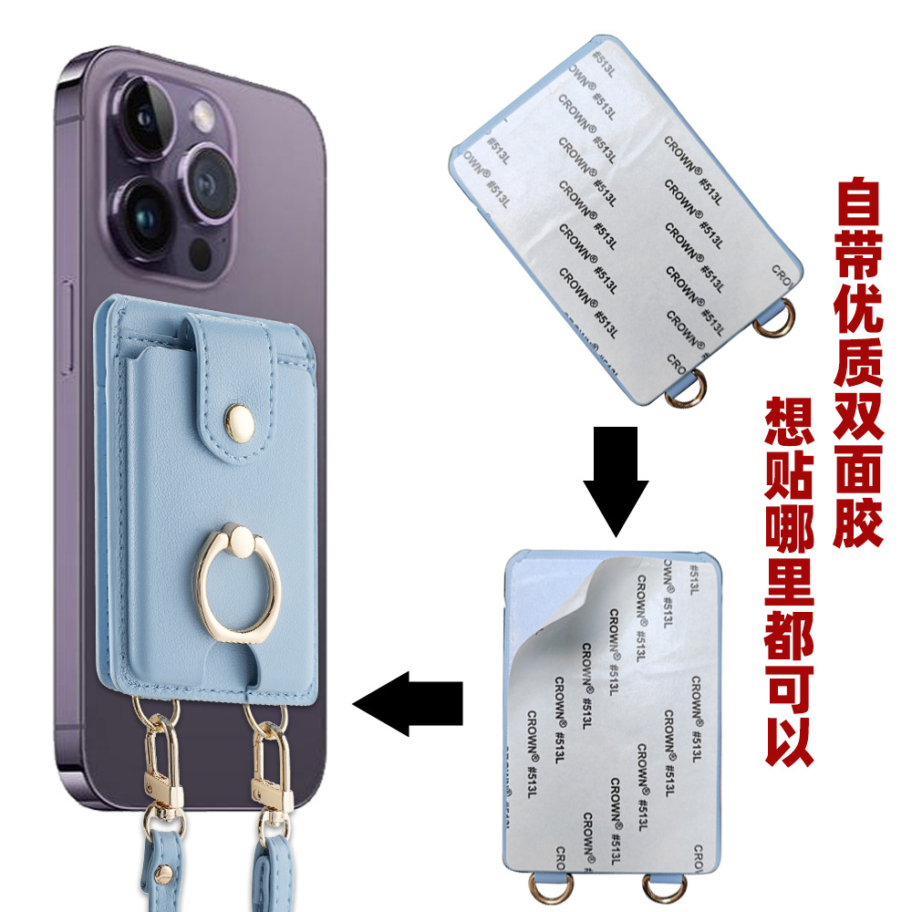 공장 재고 다기능 카드 홀더 카드 스티커 전화 케이스 지갑 카드 스티커 크리에이티브 숄더 스트랩 로프 카드 홀더스토어 가기