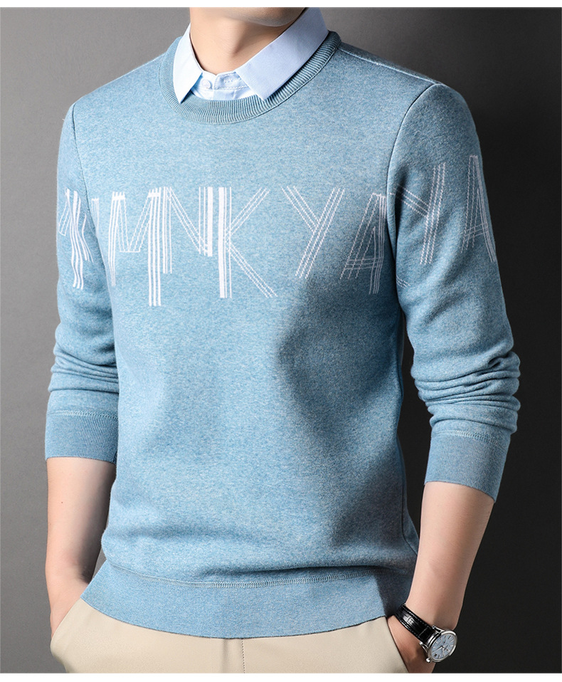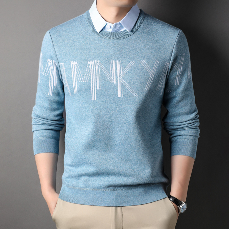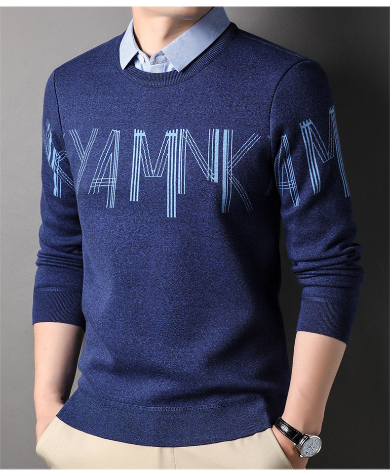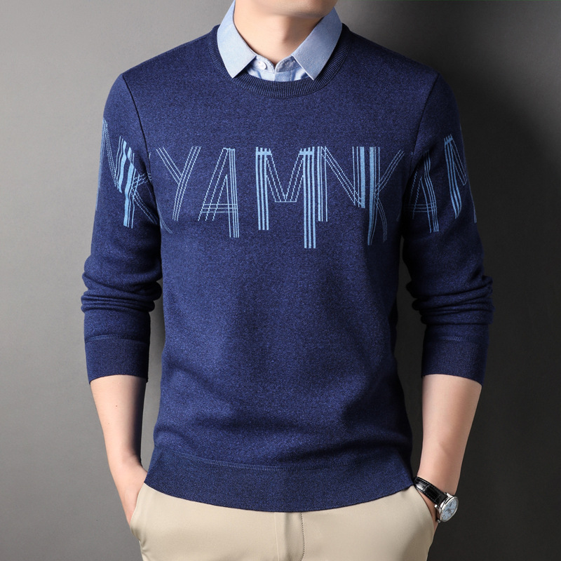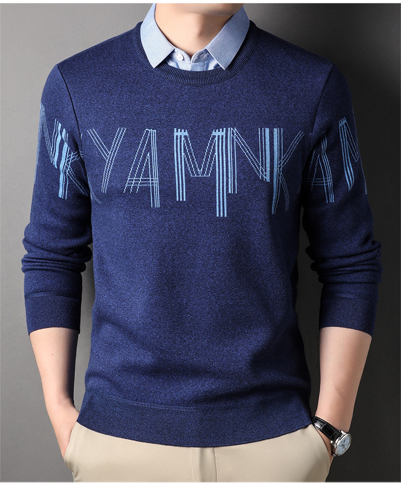 2023 가을 새 남자 스웨터 캐주얼 코튼 옷깃 남성 코트 가짜 2 F003