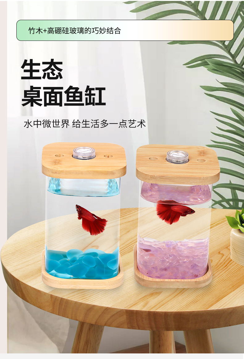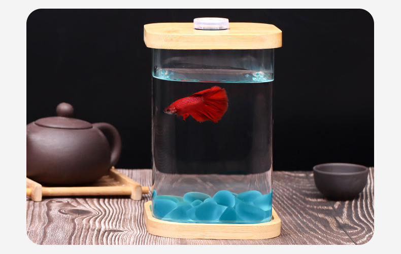 타이 스페셜 어항 소형 미니 수족관 사무실 탁상 풍경 슈퍼 화이트 유리 대나무 어항