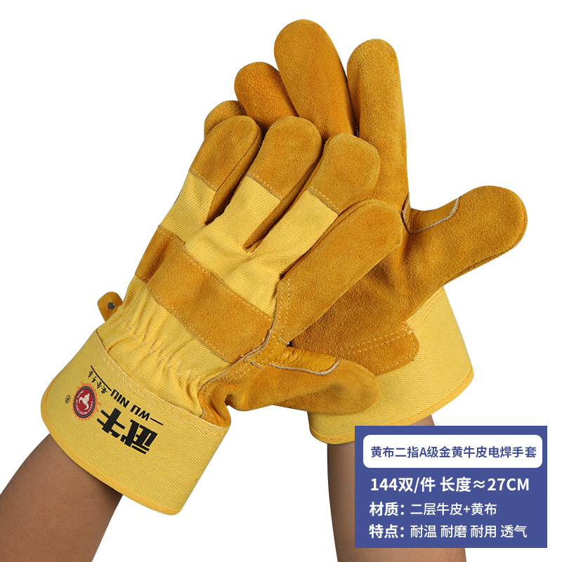 • 노란 천 두 손가락 A 급 황금 소가죽 전기 용접 장갑