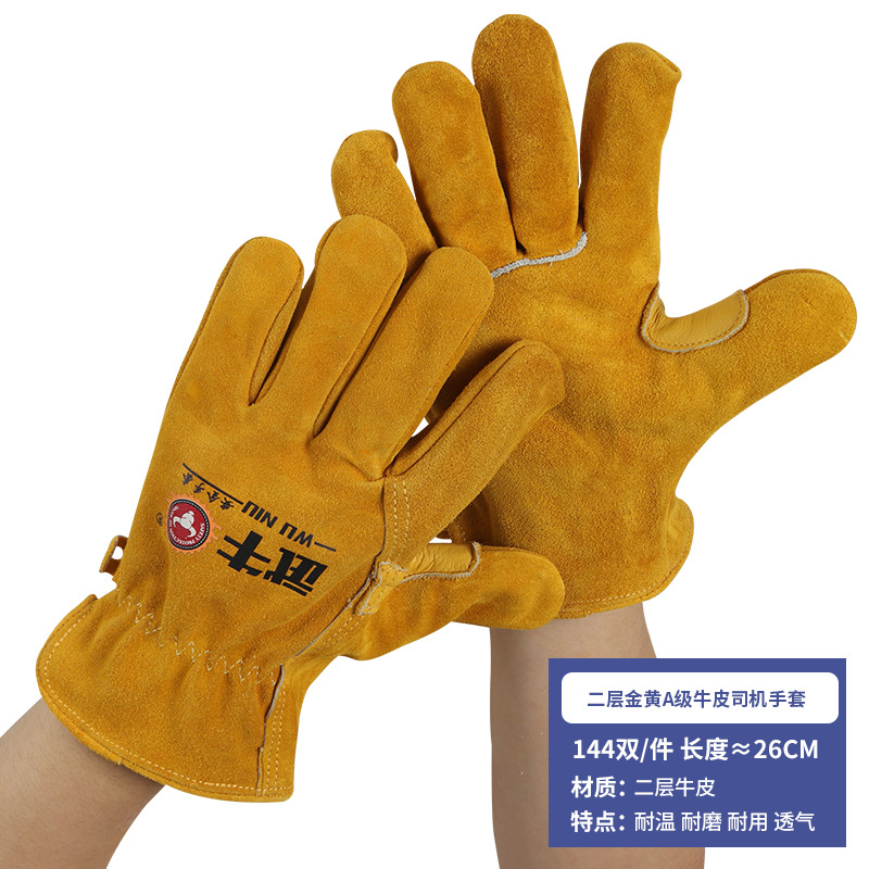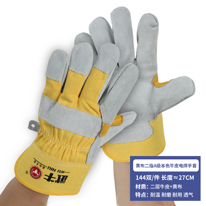 • 노란 천 두 손가락 A 급 자연 색상 소가죽 전기 용접 장갑