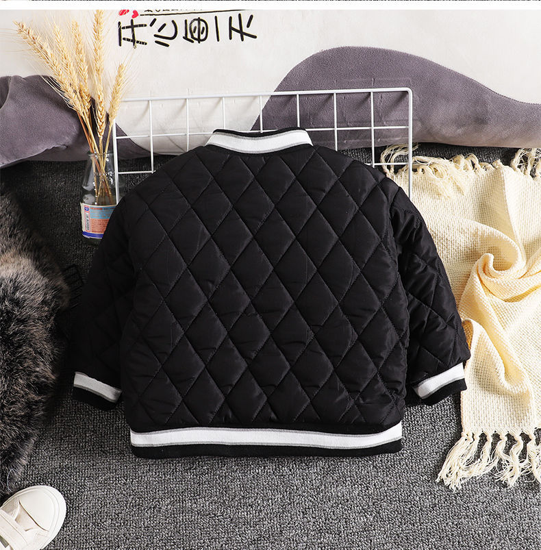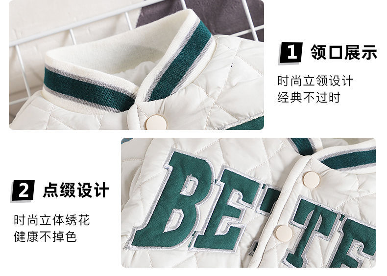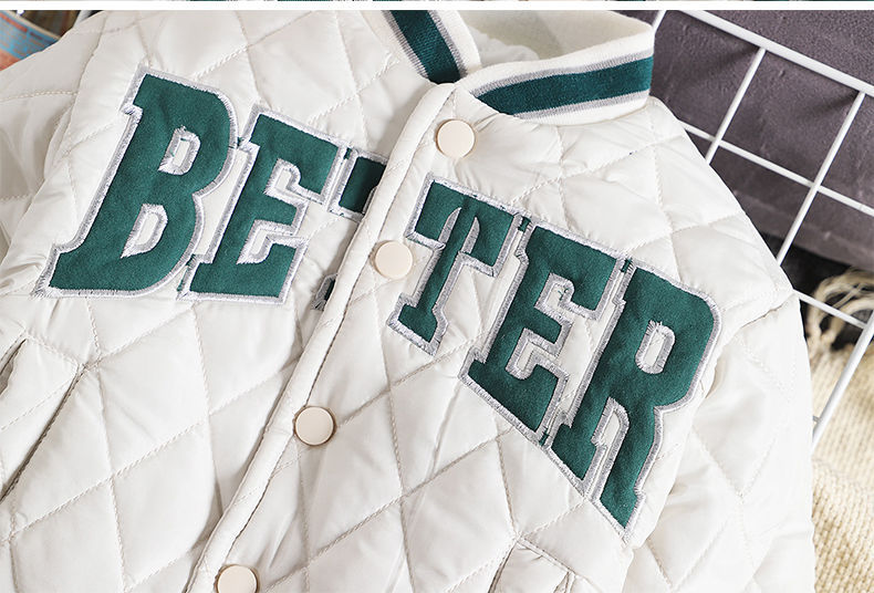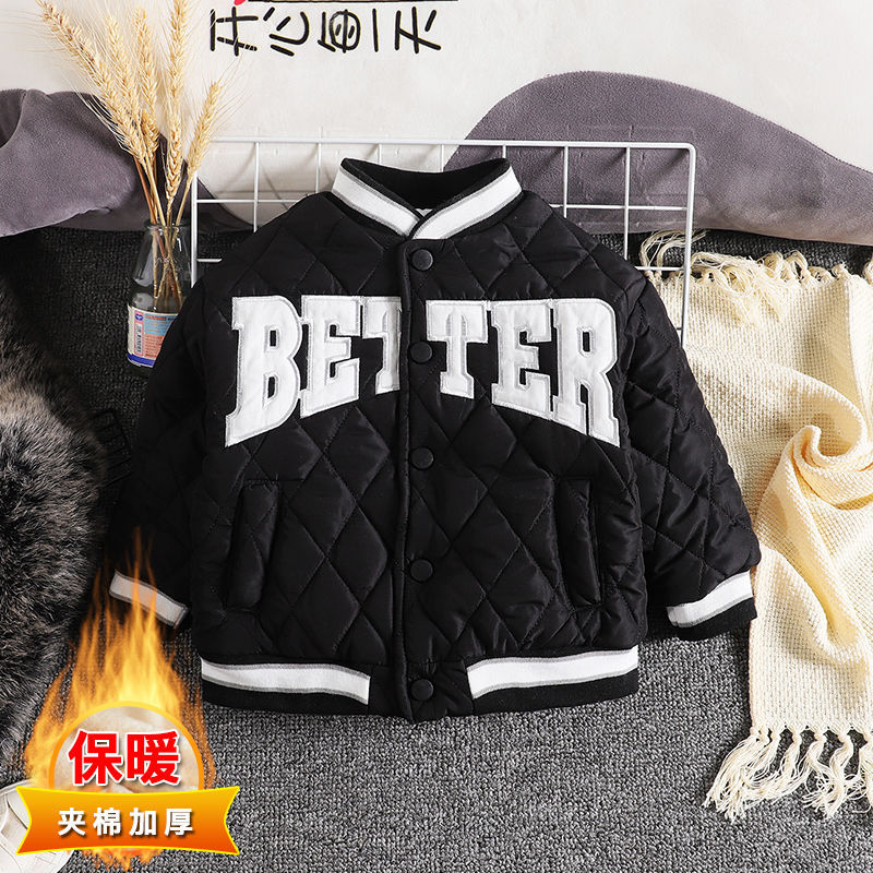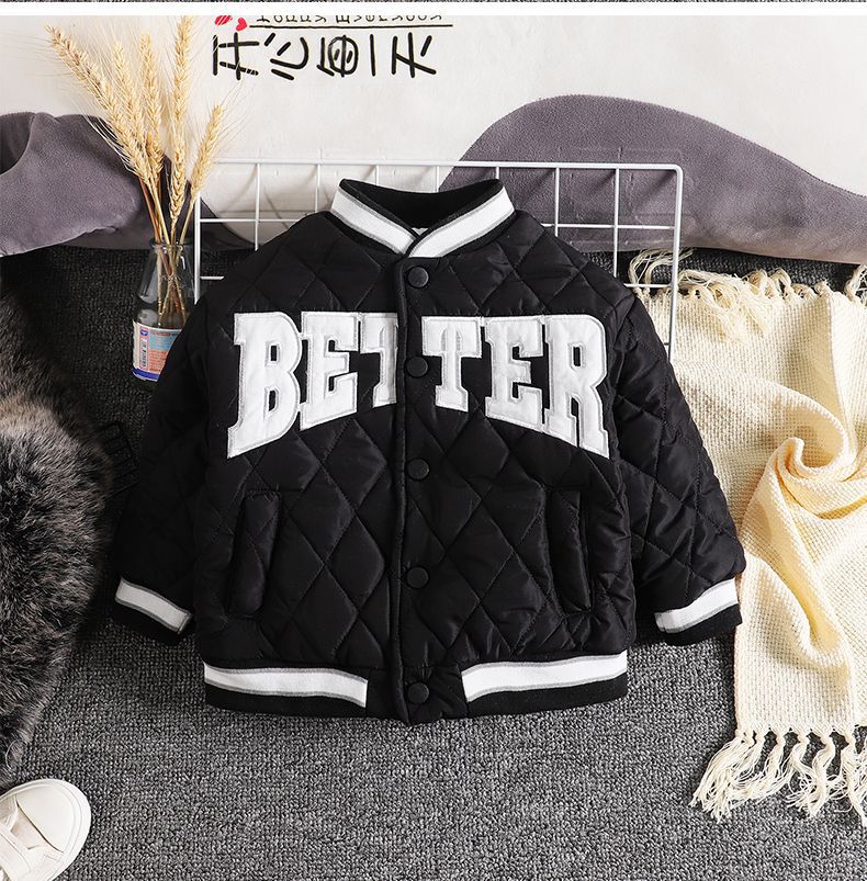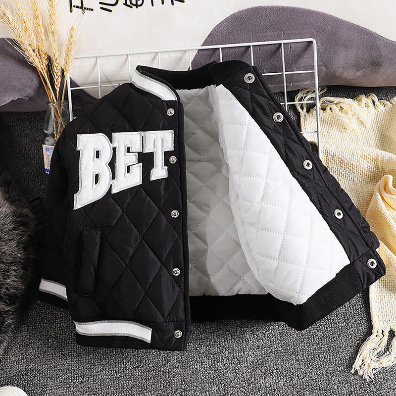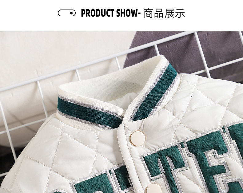 어린이 겨울 원피스 코튼 패딩 재킷 코트 제조 업체 도매 소년 소녀 영어 편지 인쇄 카디건 따뜻한 코트
