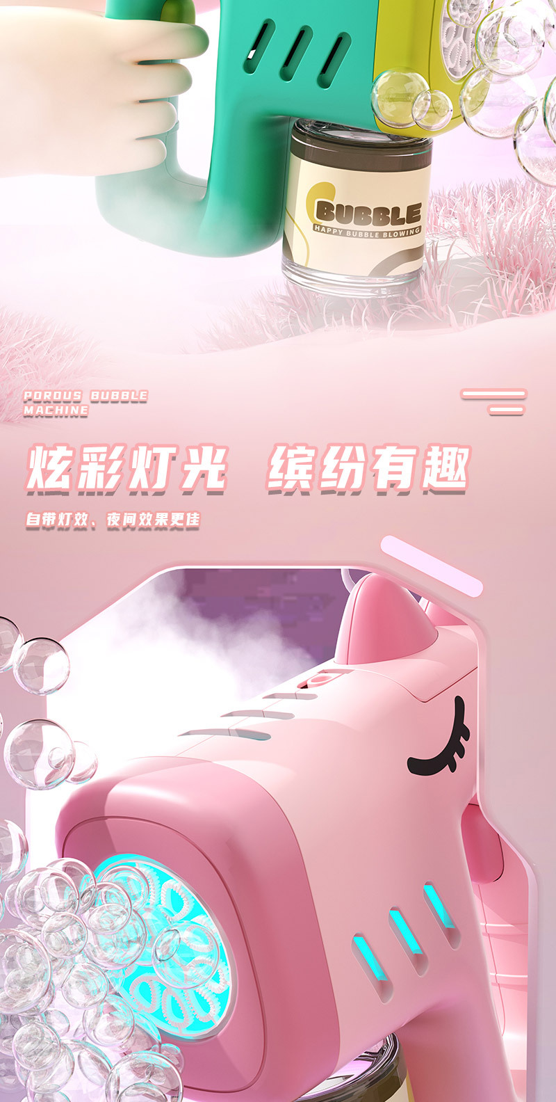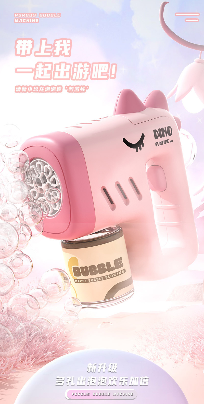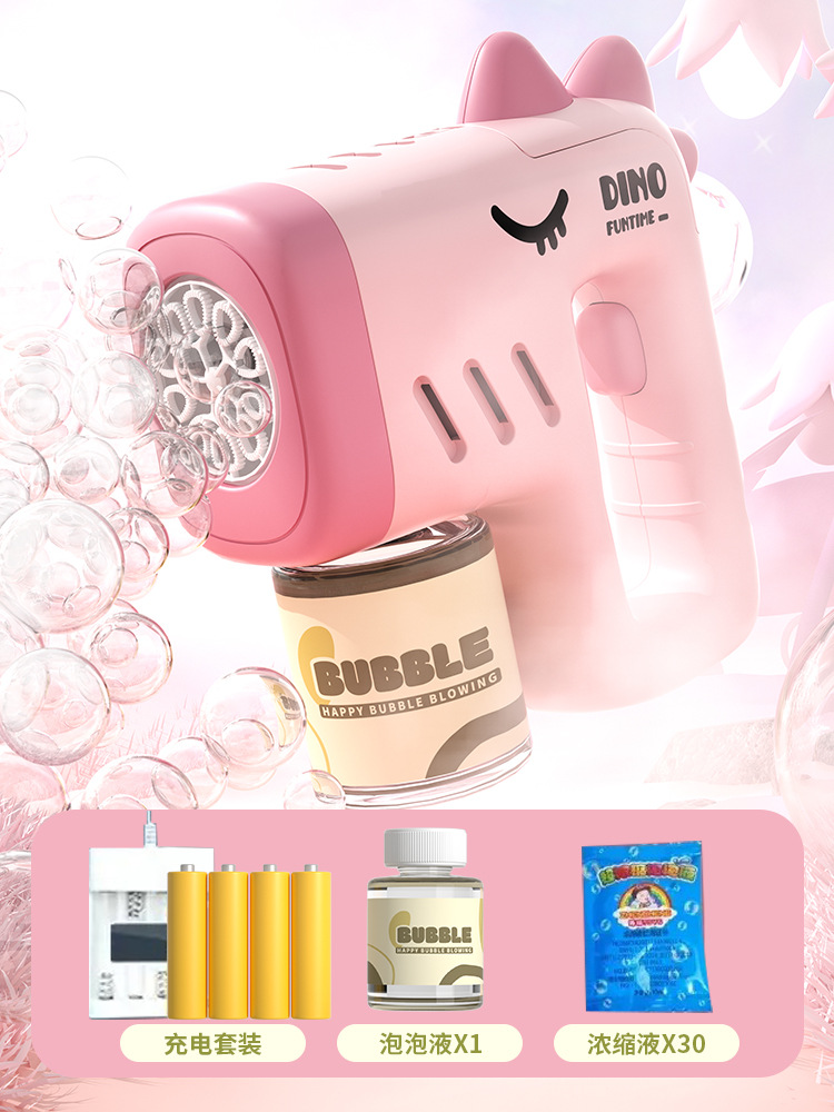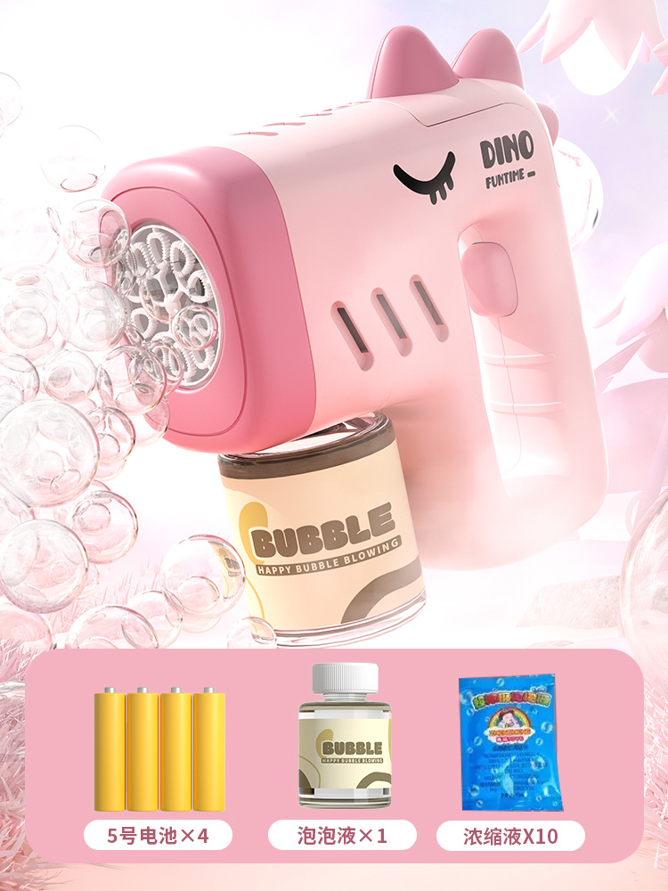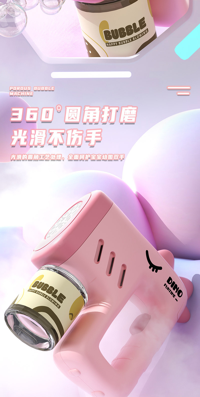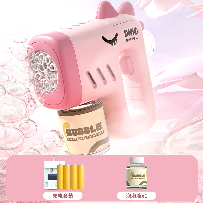 • [충전식 버전] 귀여운 핑크 공룡 [충전식 배터리 커버 + 버블 액체 1개 포함]