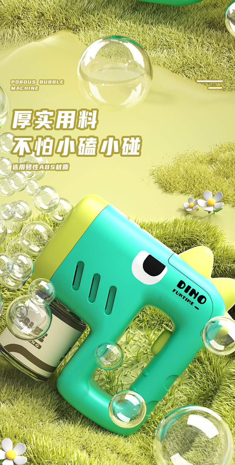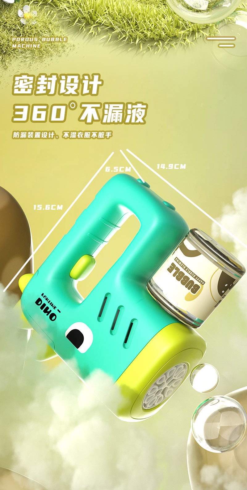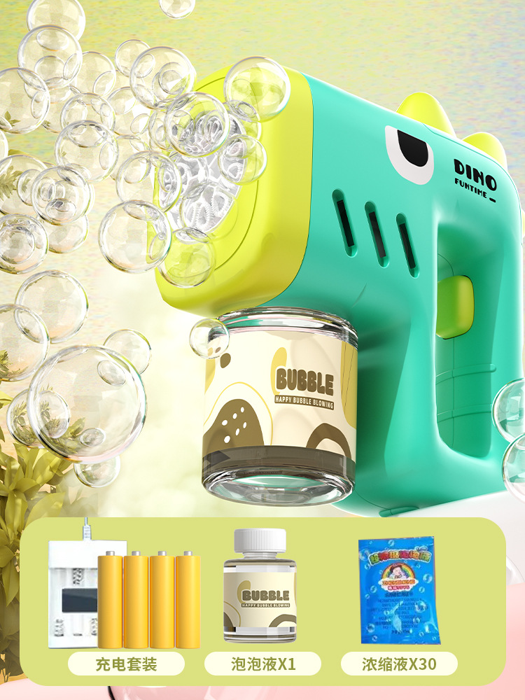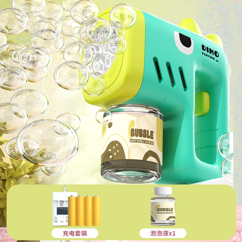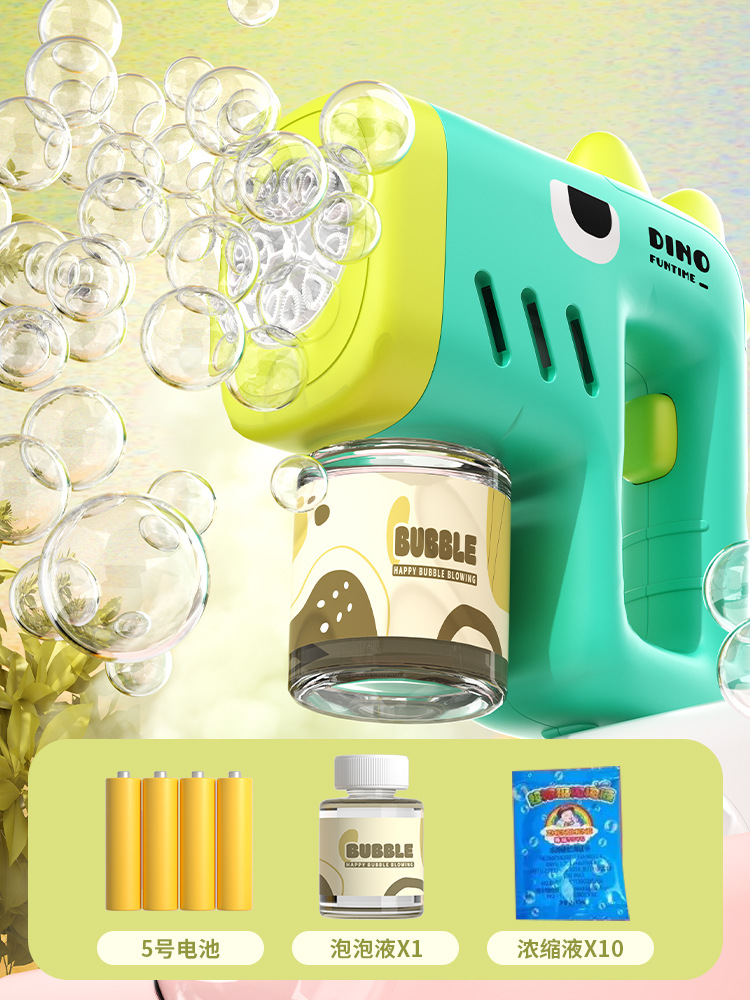 • [충전식 버전] 귀여운 녹색 공룡 [충전식 배터리 커버 + 버블 액체 1개 포함]
