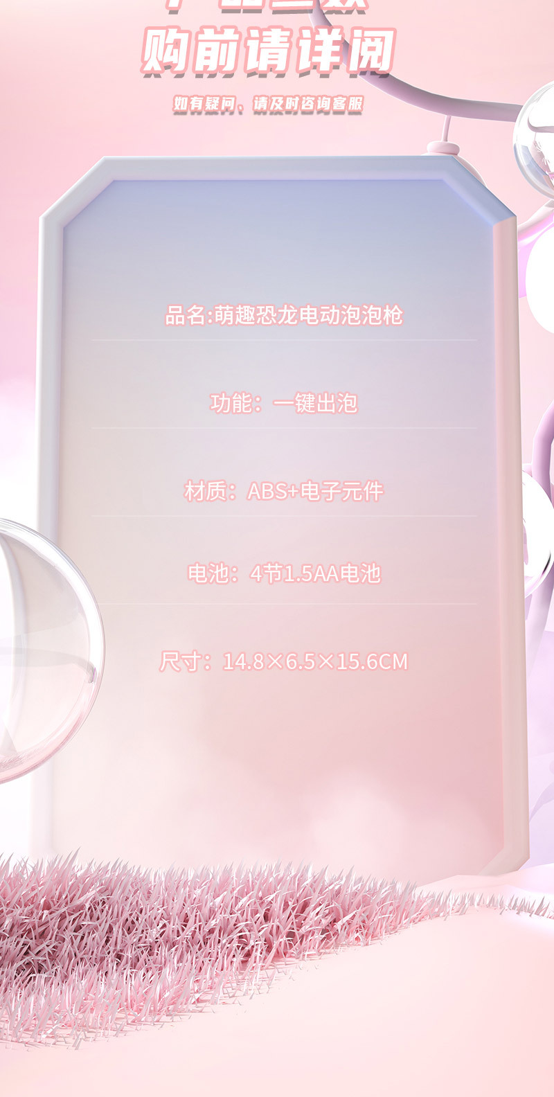 • [일반 버전] 귀여운 핑크 공룡 [배터리 4개 + 버블액 1개 + 농축액 10개 포함]