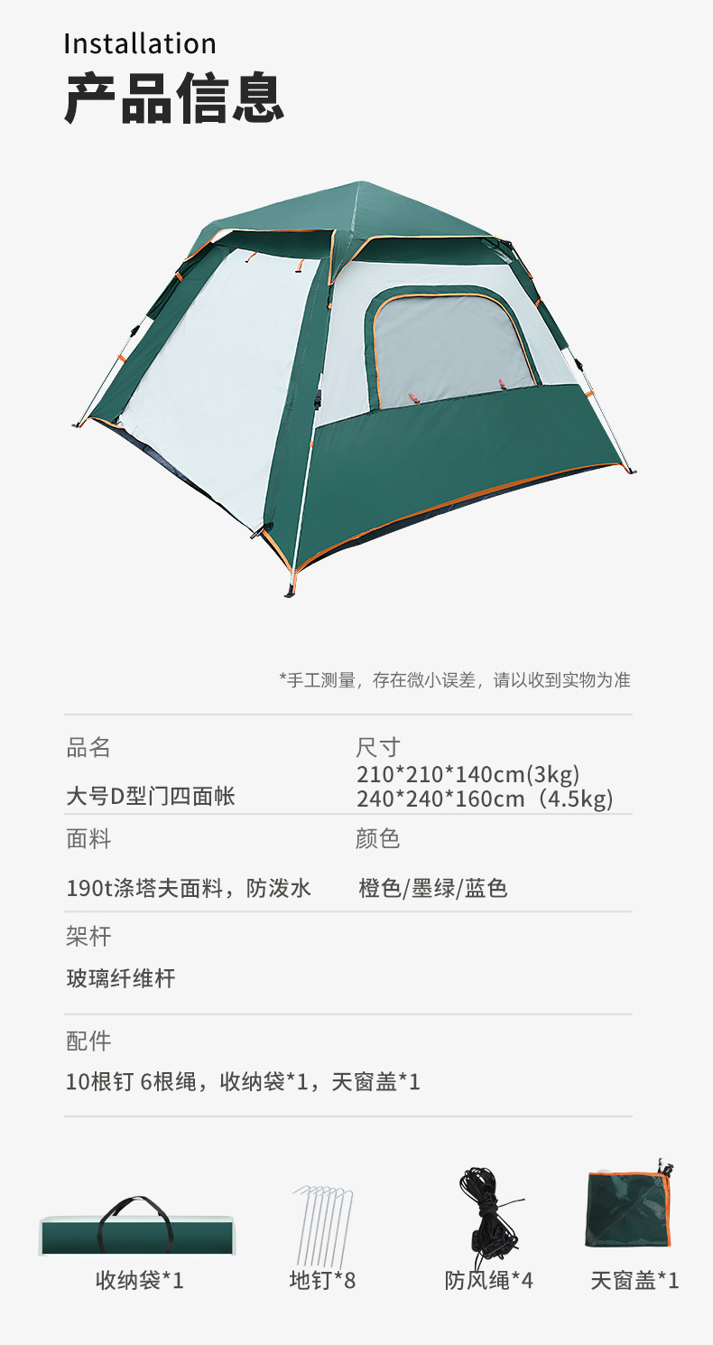 • 5-8 명 (240*240*160) 다크 그린 D 자형 4 면 계정 [수납 가방 로비 장대 방풍 로프 채광창 커버 네일]