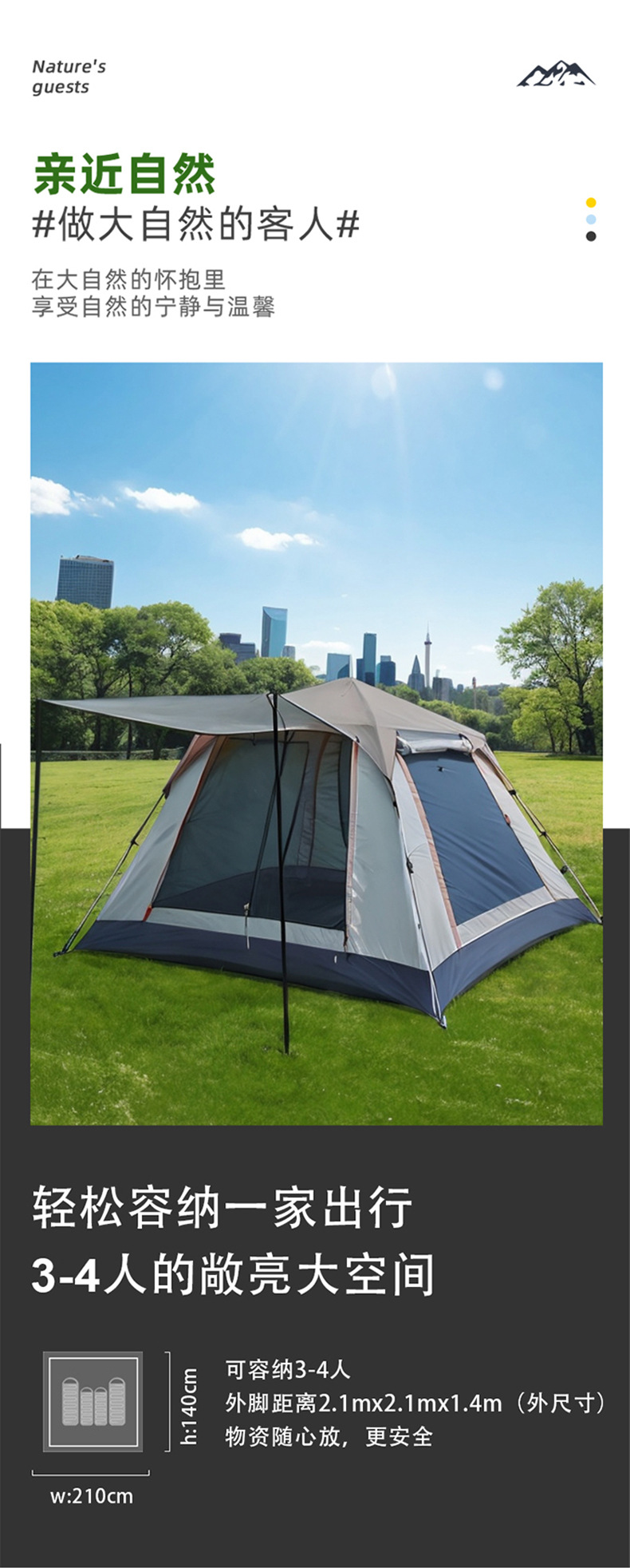 • 3-4 명 (210*210*140) 다크 그린 D 자형 4 면 계정 [수납 가방 로비 장대 방풍 로프 채광창 커버 네일]