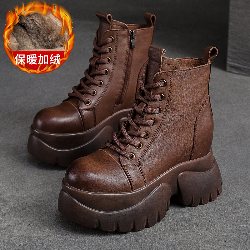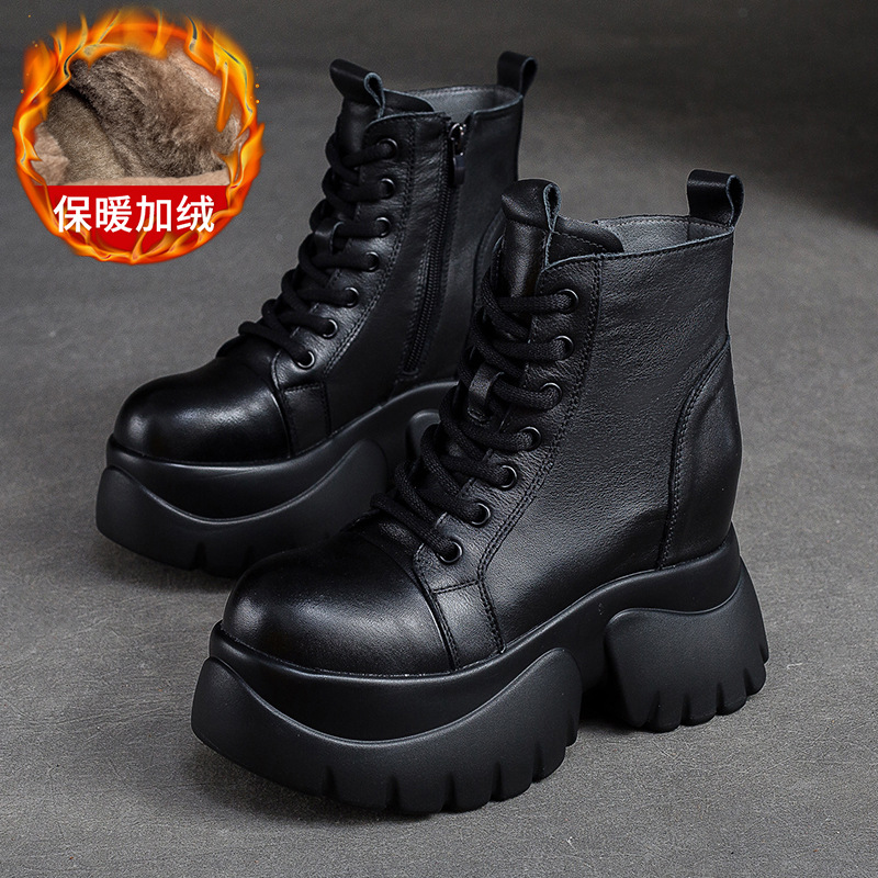 상하이 제주 가을과 겨울 새로운 복고풍 스타일 내부 높이 증가 여성 부츠 사이드 지퍼 마틴 부츠 탑 레이어 소가죽 모든 경기 여성 신발스토어 가기