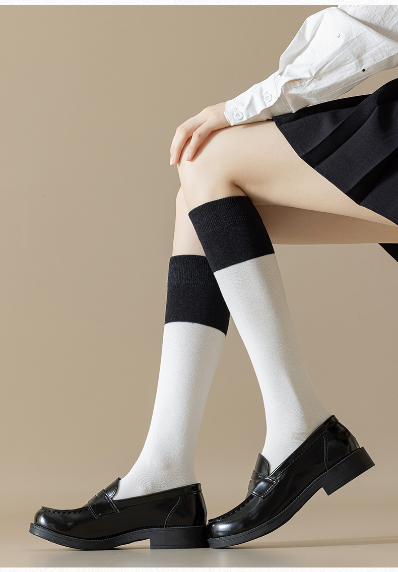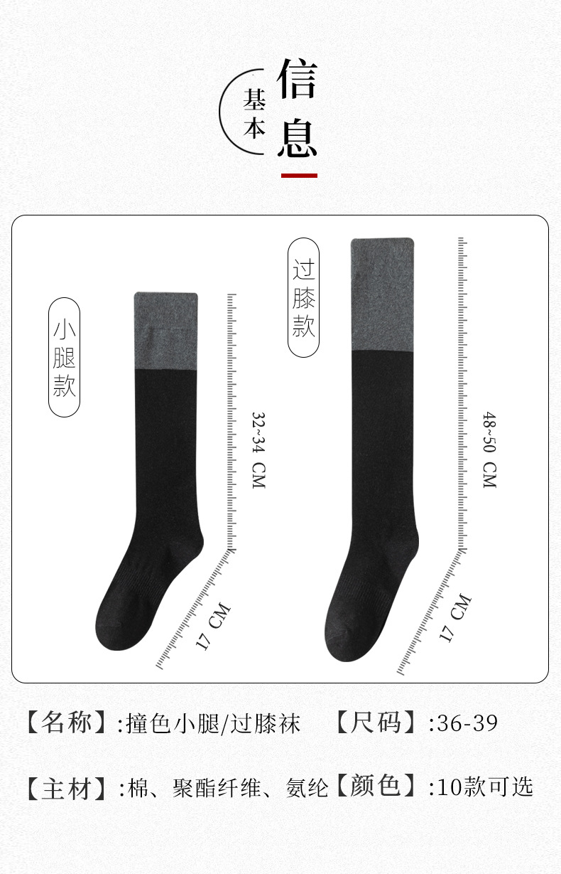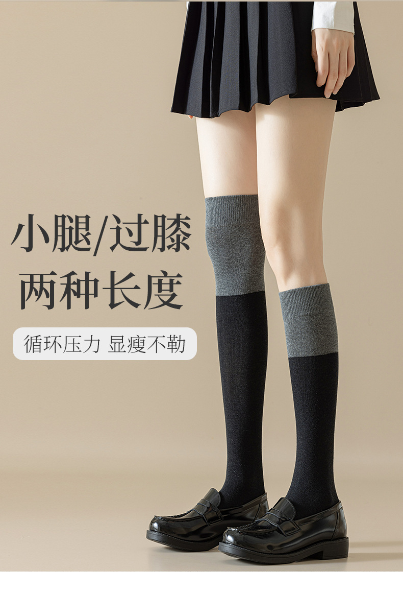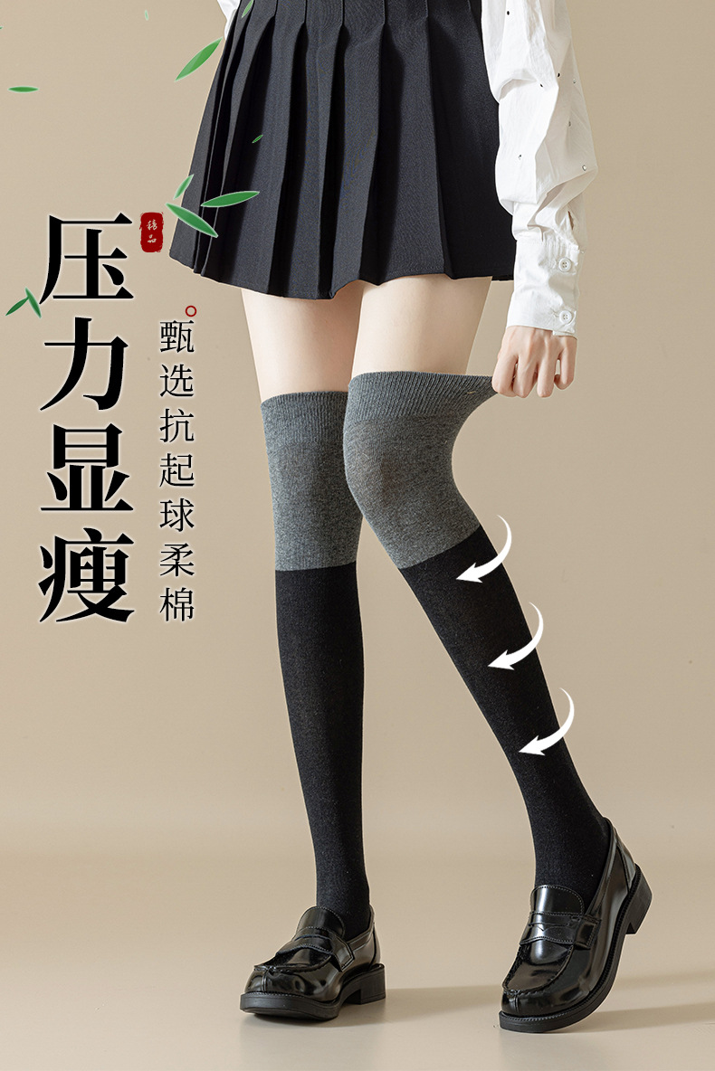 가을 겨울 여성용 양말 일본 스타일 배색 jk 무봉제 종아리 양말 트렌디 슬림 압박 양말 인기 INS 스타일 무릎 위 양말스토어 가기