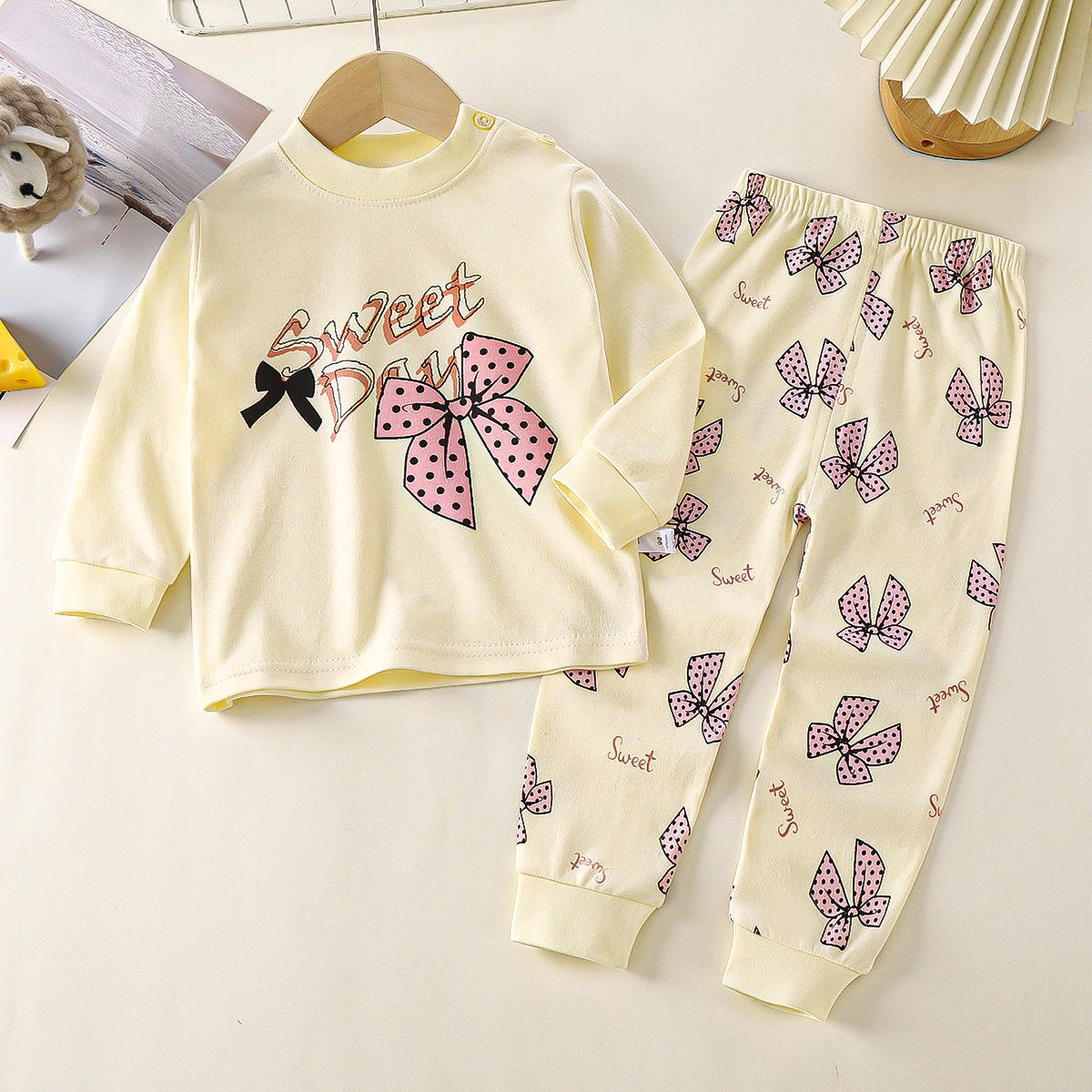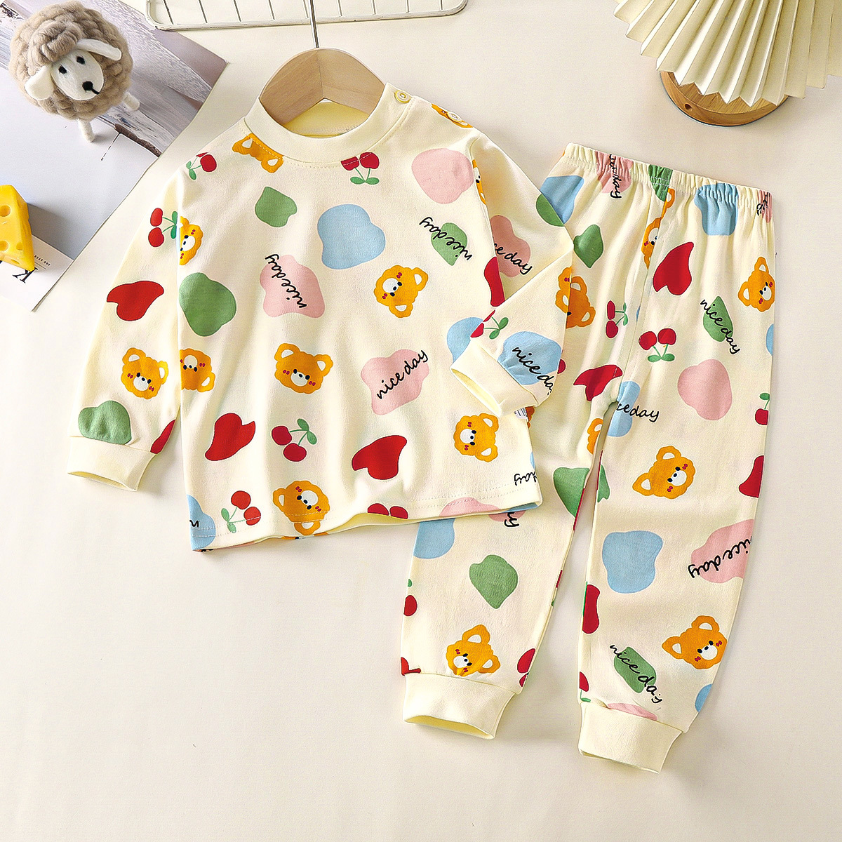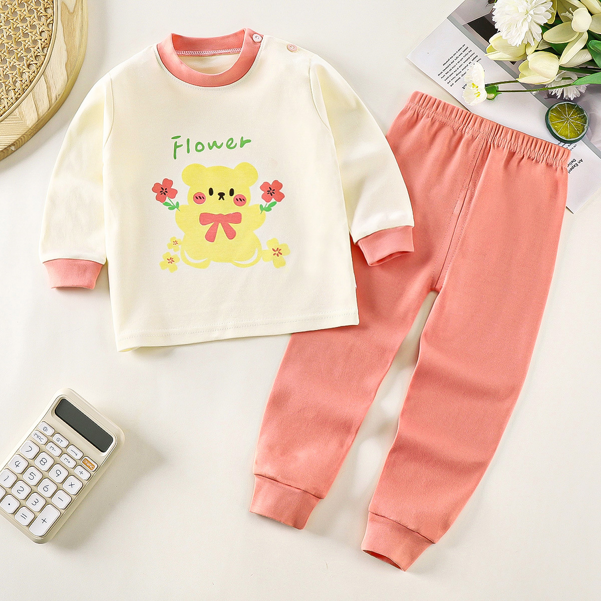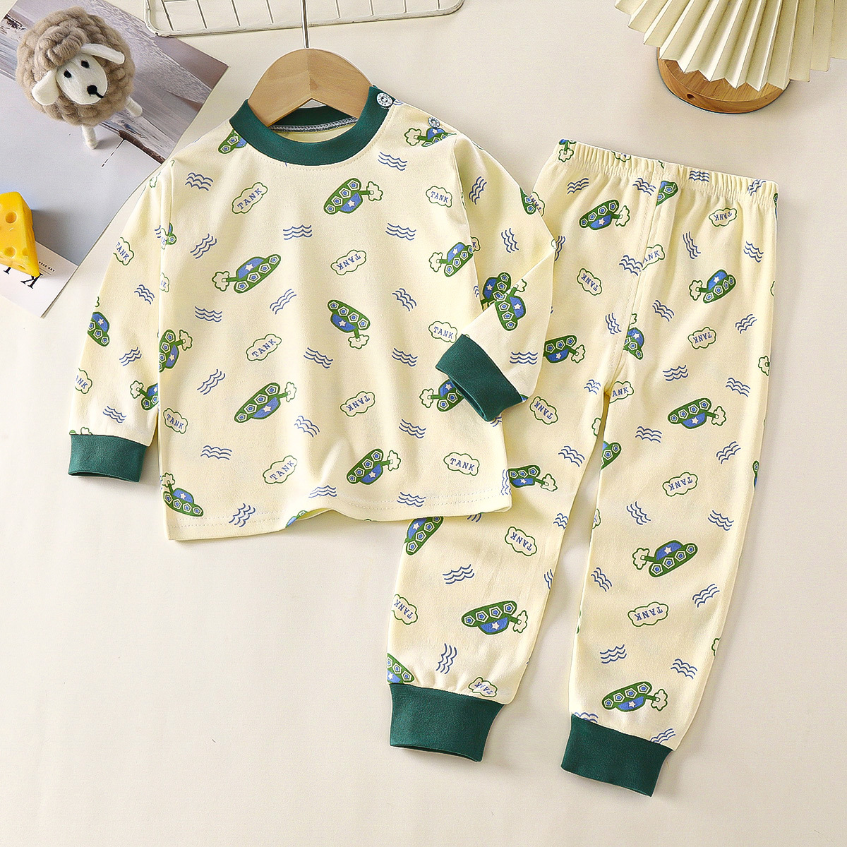 아동 가을 옷 및 긴 바지 세트, 유아 순면 가을 아기 속옷, 소녀, 소년, 어린이 및 중년 어린이를 위한 만화 따뜻한 옷스토어 가기