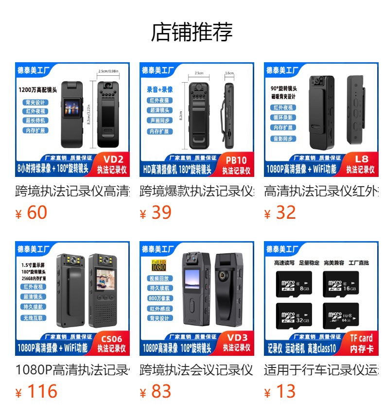 2. 本店所有产品出厂均不带内存卡,无卡不能拍照录像!