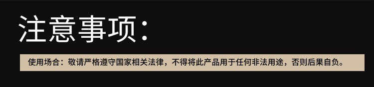 使用场合:敬请严格遵守国家相关法律,不得将此产品用于任何非法用途,否则后果自负。