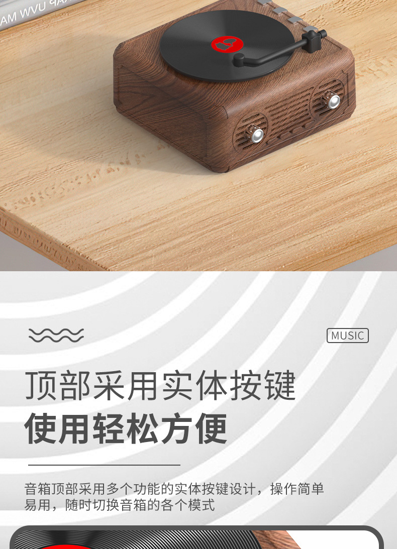 레코드 플레이어 무선 블루투스 스테레오 레트로 크리에이티브 미니 휴대용 카드 소형 스피커 서브 우퍼 선물 도매스토어 가기