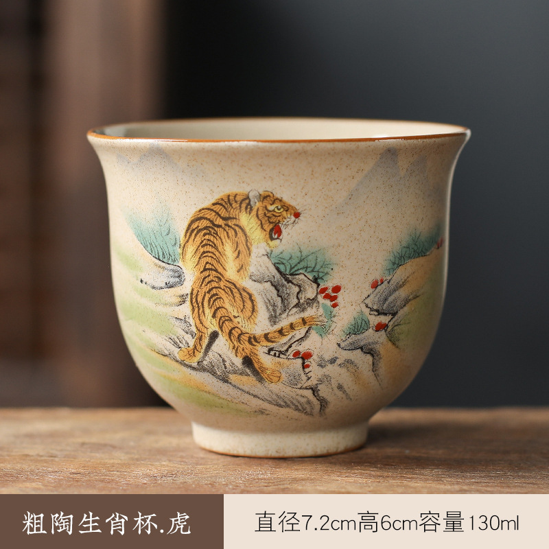 • 도자기 조디악 카운터 입 컵 호랑이