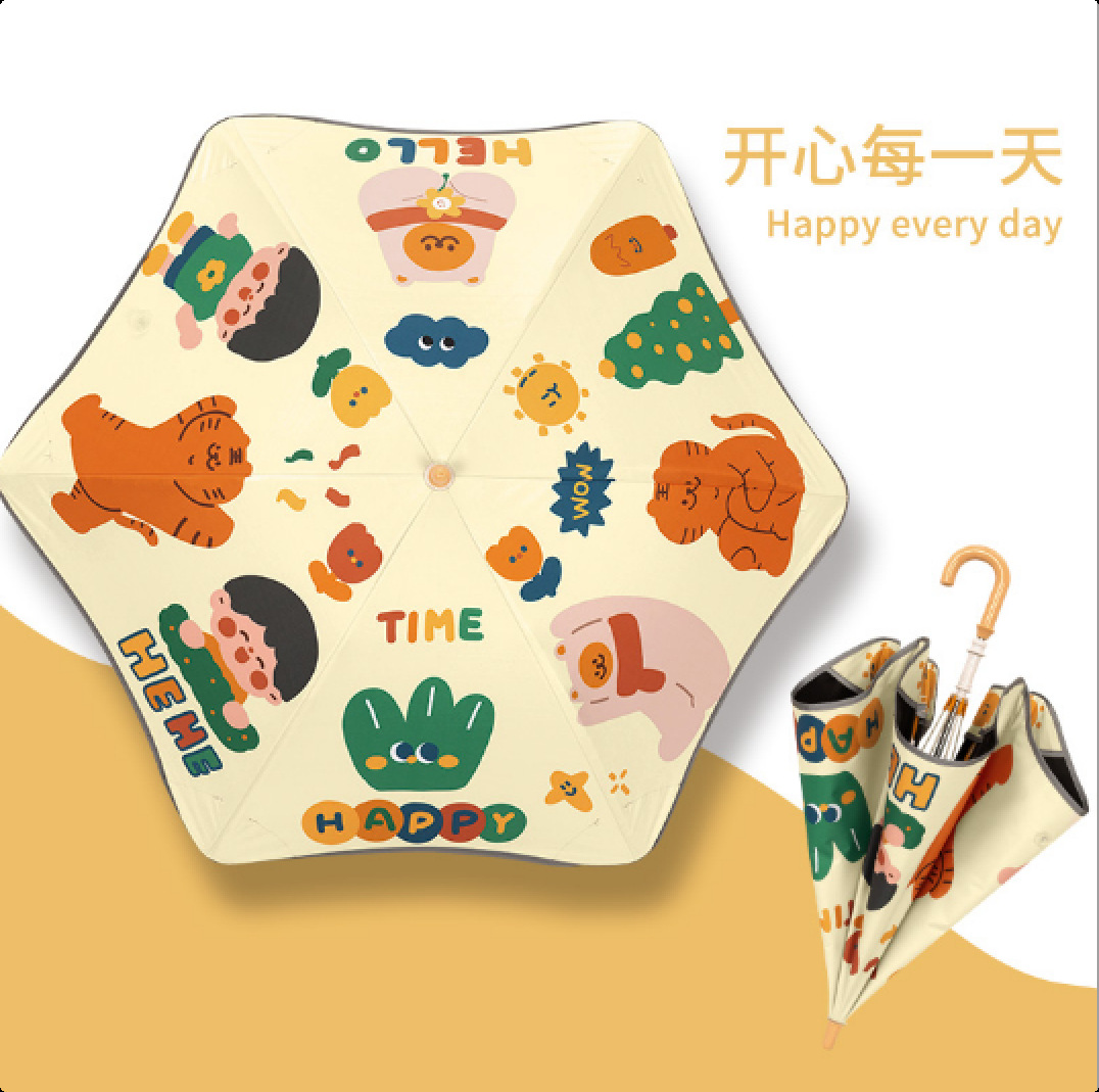어린이를위한 안전한 둥근 우산 소녀 소년 초등학교 어린이 직선 막대 곡선 긴 손잡이 우산 맑은 우산 이중 사용
