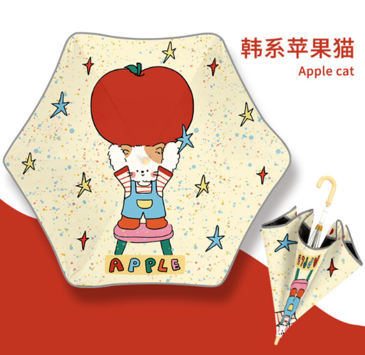 • 확대 [직경 97cm] 긴 손잡이, 둥근 모서리, 펑크 방지 - 한국 사과 고양이 (안전 반사 스트립)