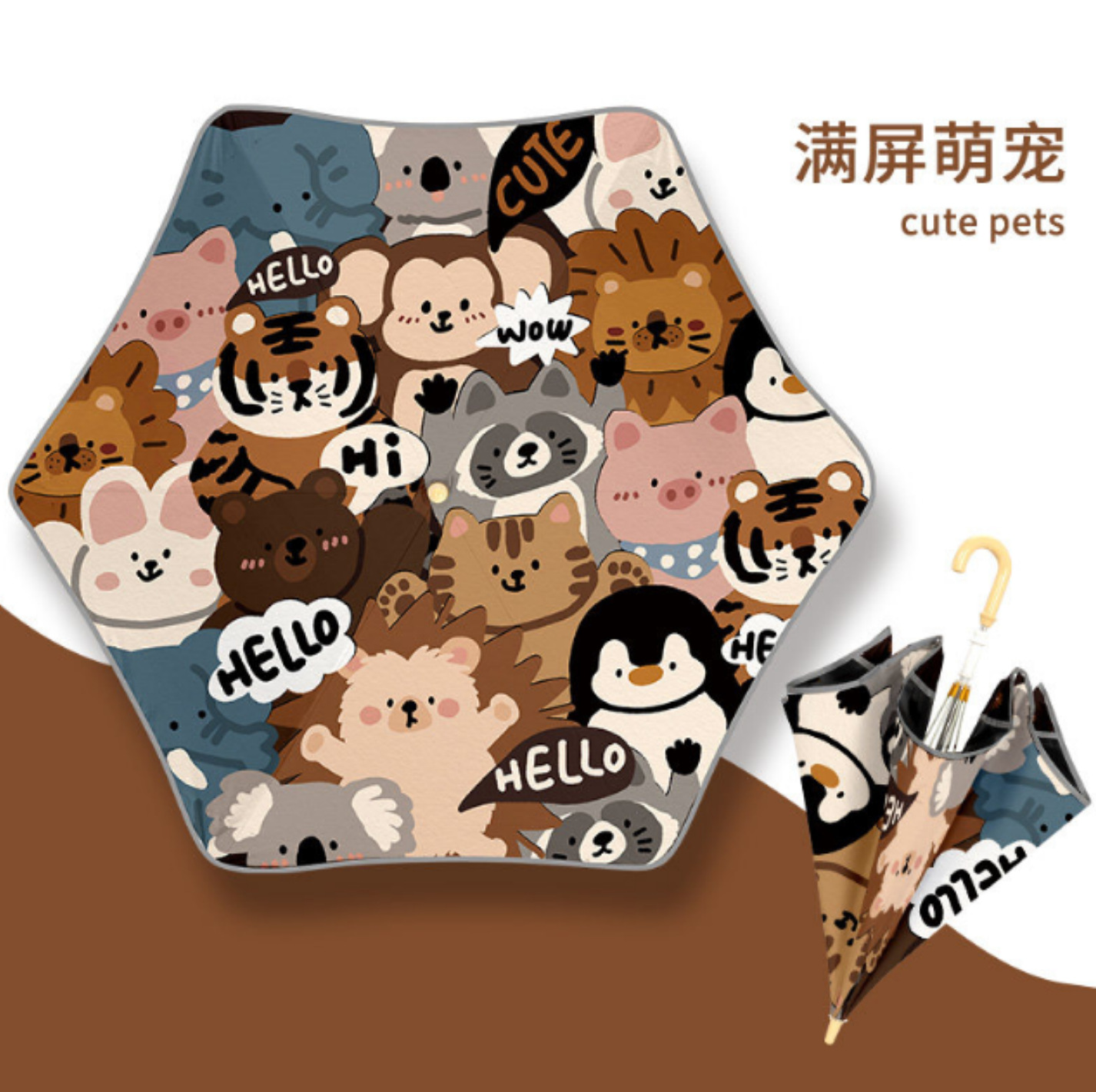 • 확대 [직경 97cm] 긴 손잡이, 둥근 모서리, 찌르기 방지 - 비오는 날 새끼 고양이(안전 반사 스트립)