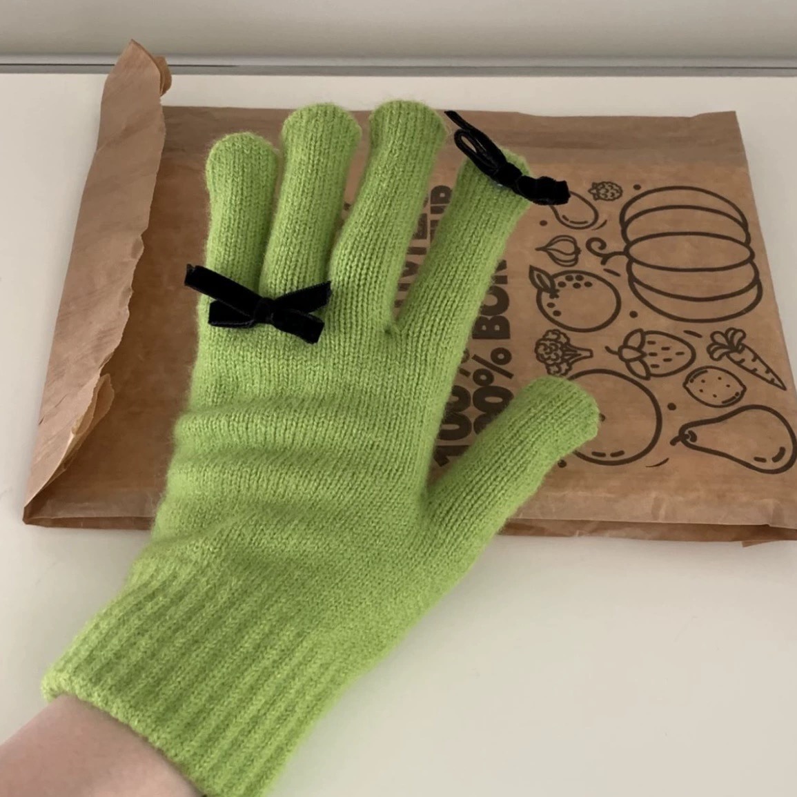 새로운 가을과 겨울 니트 장갑 여성용 슈퍼 귀여운 활 새는 손가락 터치 스크린 캔디 컬러 소녀를위한 모든 경기 장갑스토어 가기