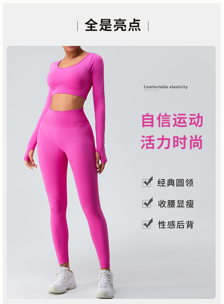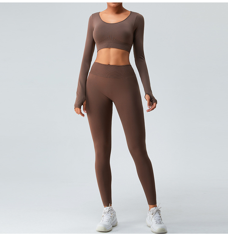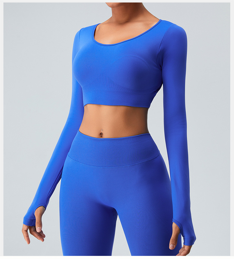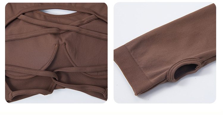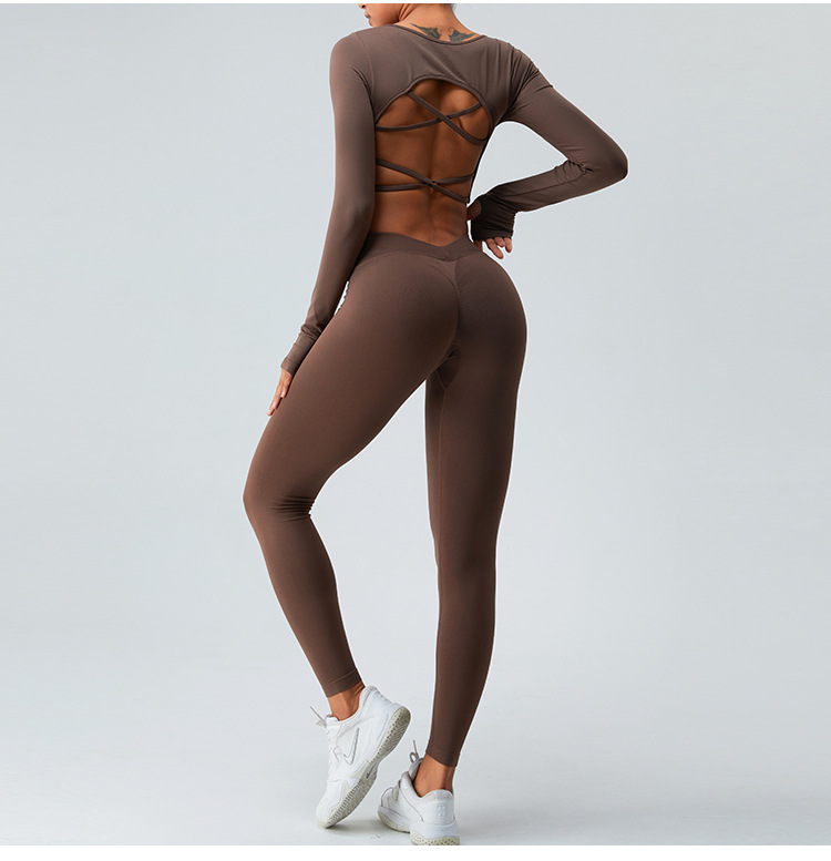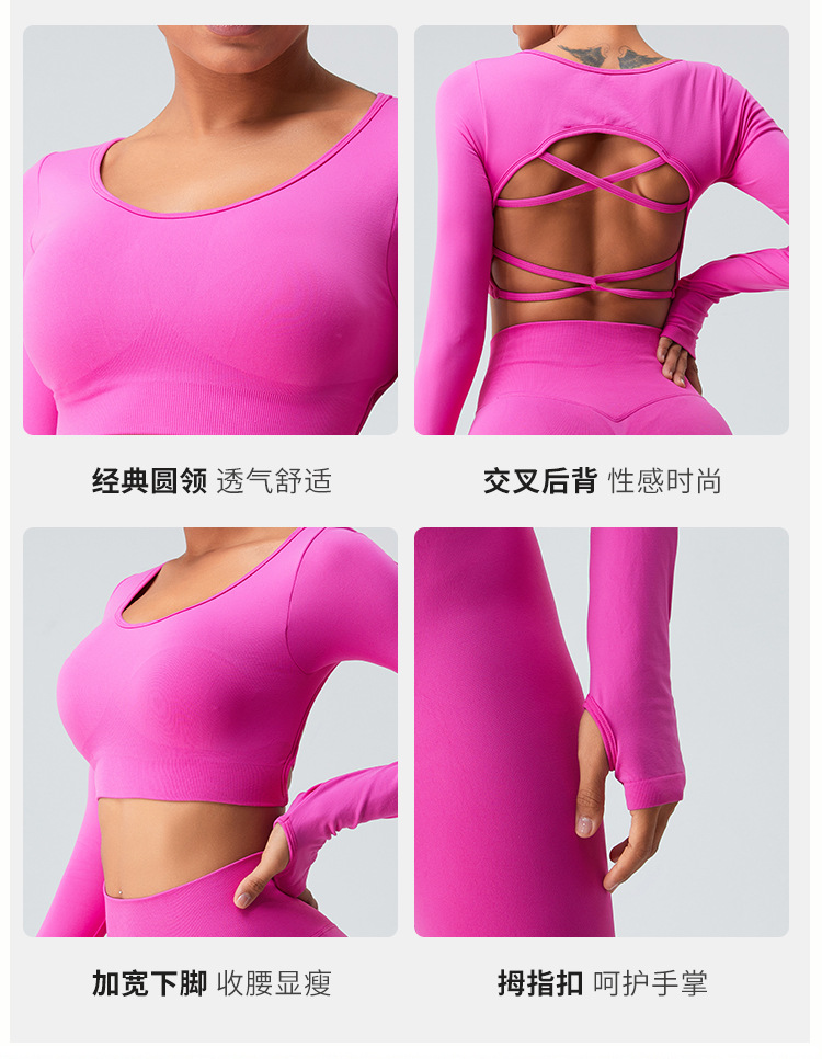 새로운 유럽과 미국의 빠른 건조 원활한 긴 소매 요가 세트 여자의 크로스 백 요가 최고 실행 스포츠 피트니스 세트